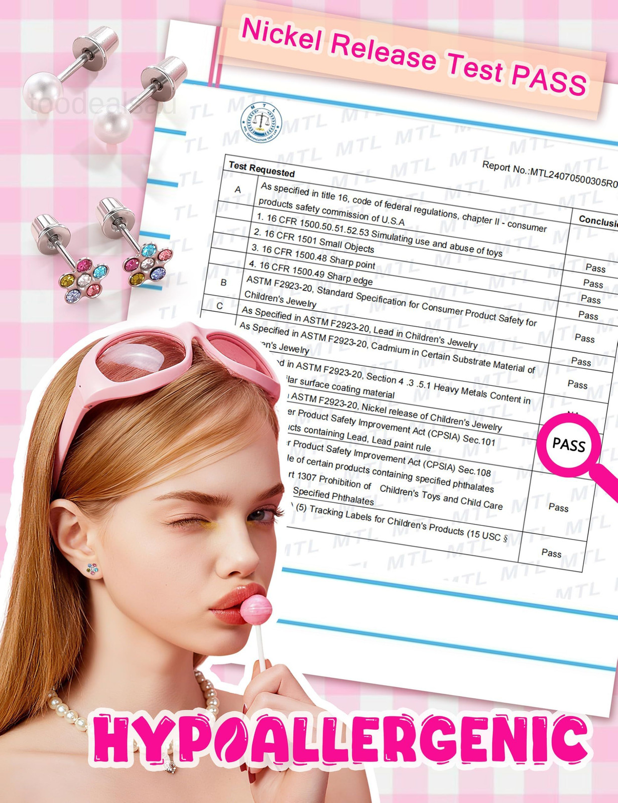 16 Pairs Hypoallergenic Earrings for Girls Kids Women 20G, white