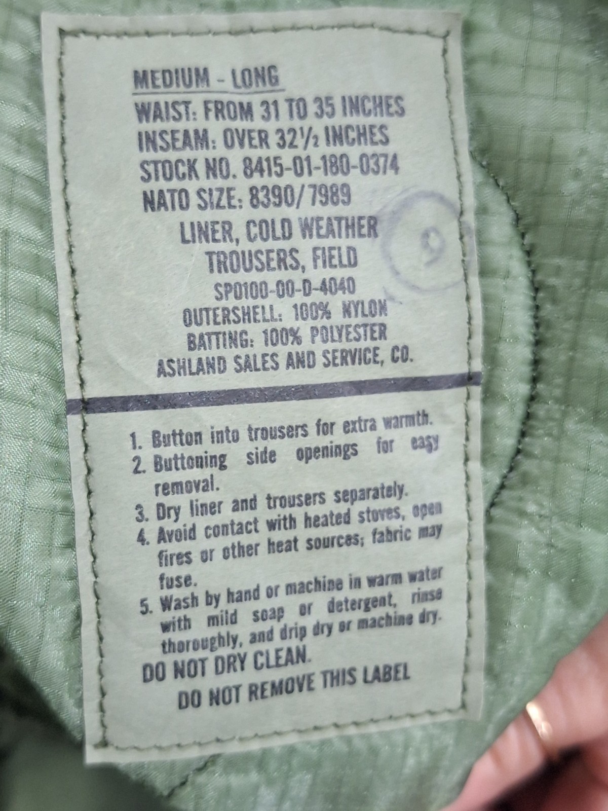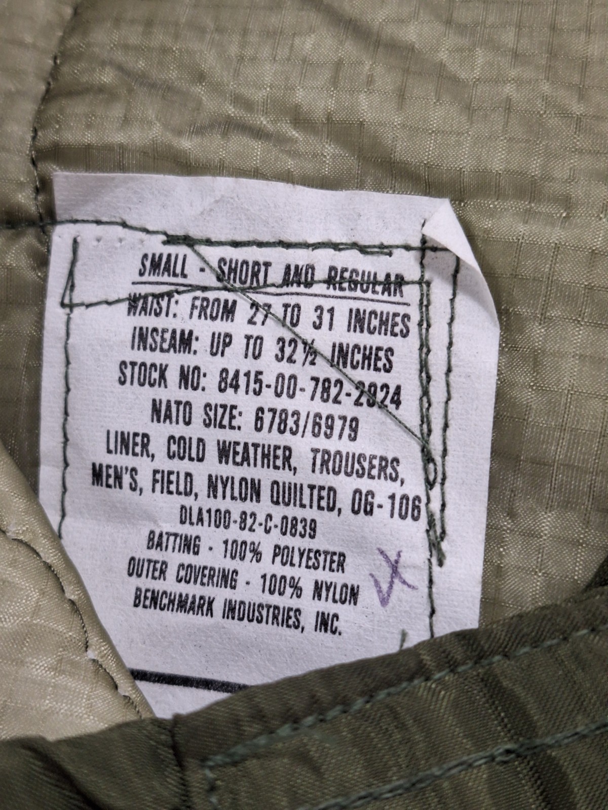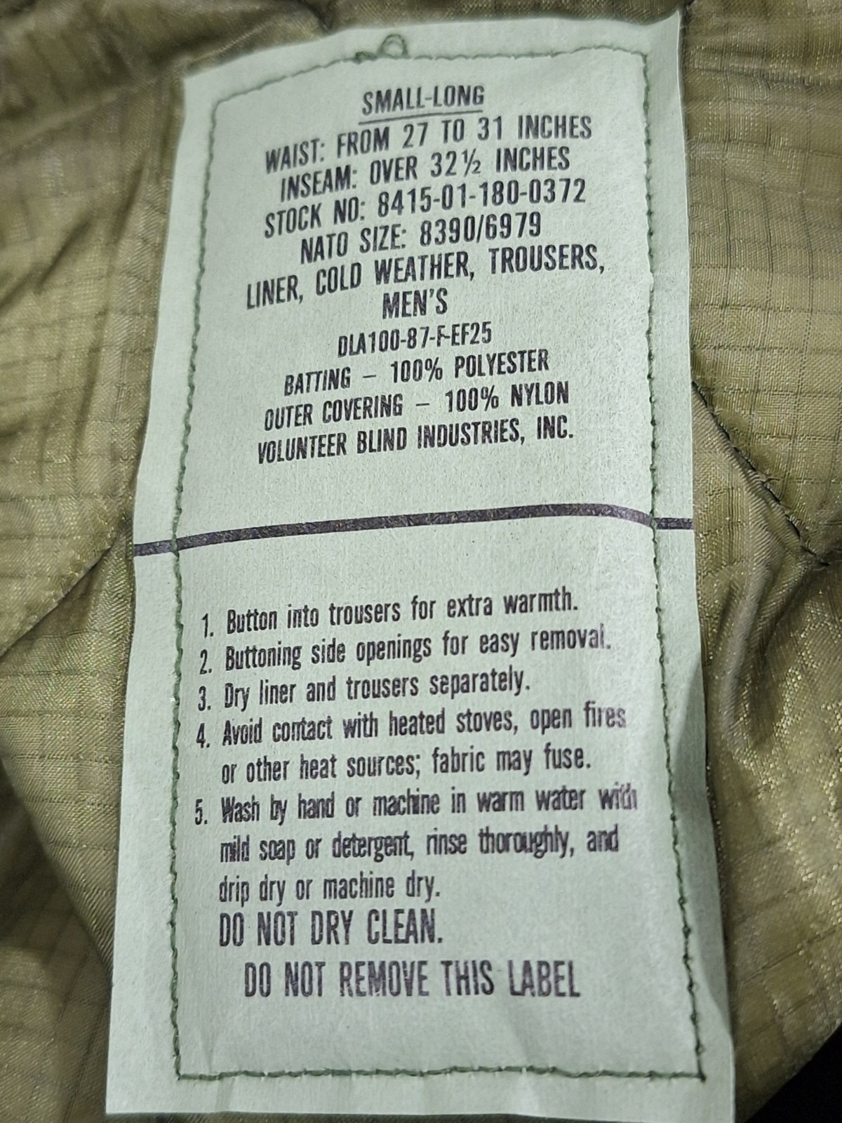 как выглядит USGI Military Cold Weather M65 Quilted OD Trousers Field Pants Liners Brand NEW фото