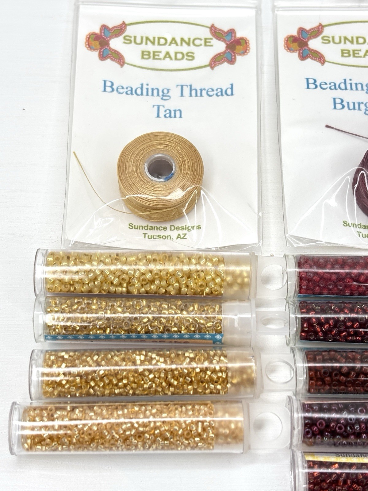 Sundance Designs Beads Burgundy Cream Tan Gold Sz 11 14/15 Beading Thread Lot 15