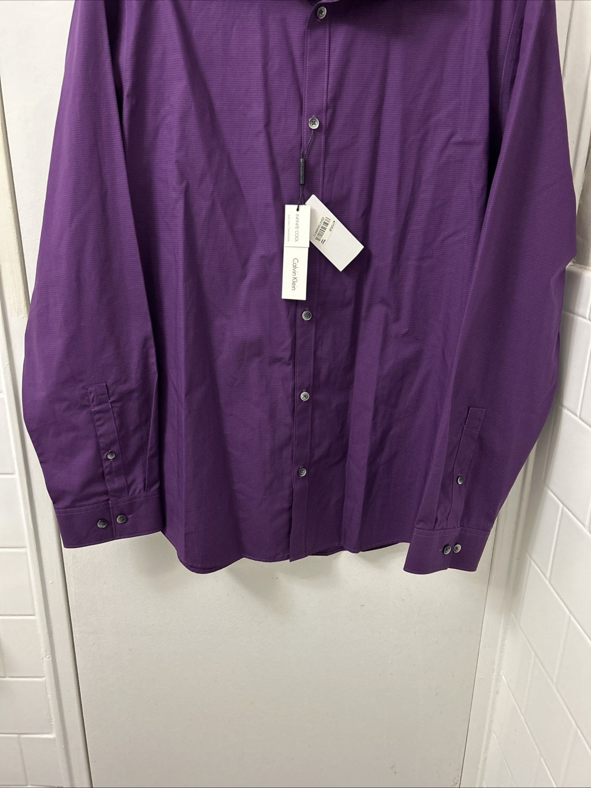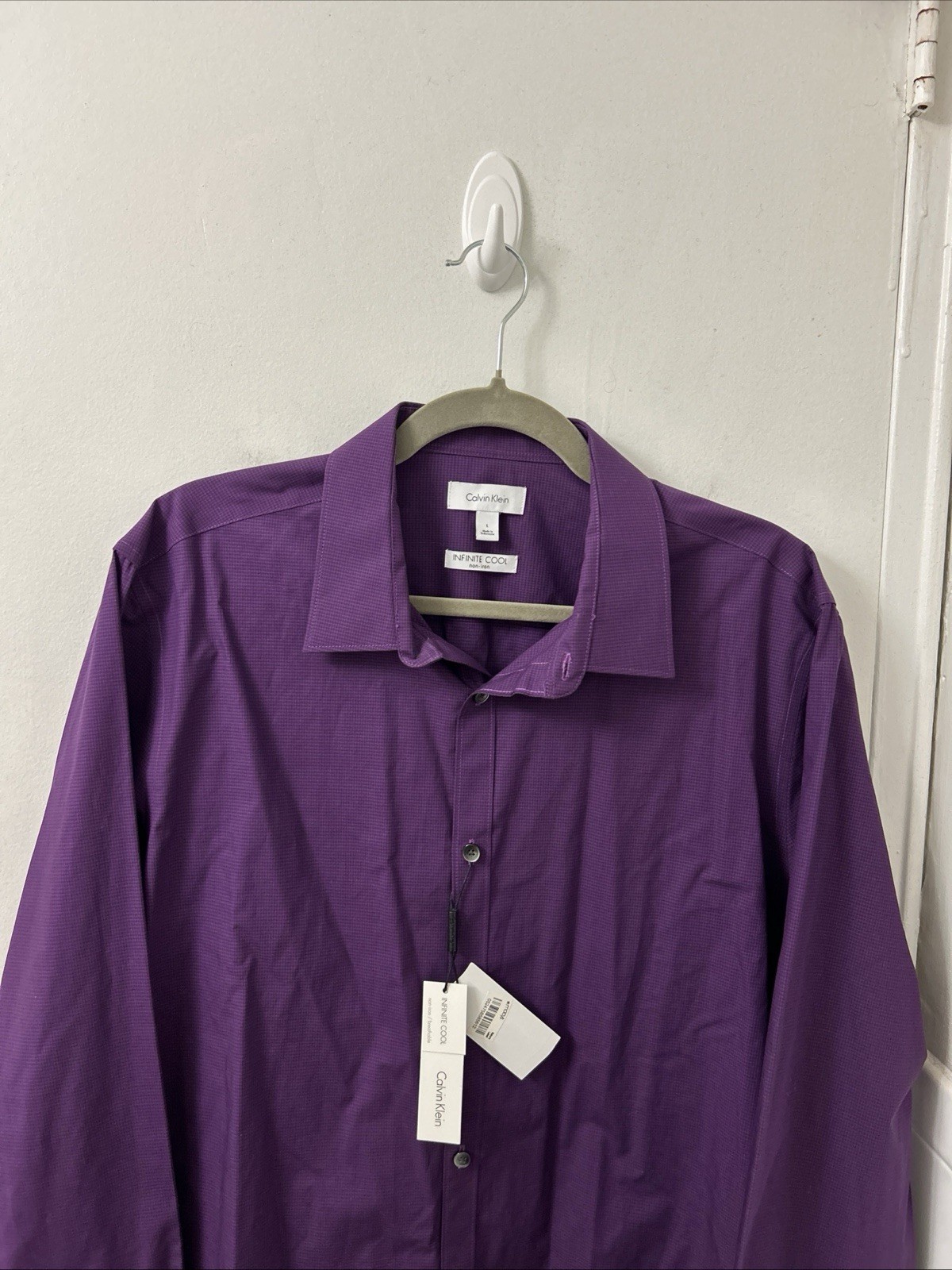 как выглядит Calvin Klein Shirt Mens L Purple Infinite Cool Non-Iron Button Up NWT 60 MSRP фото