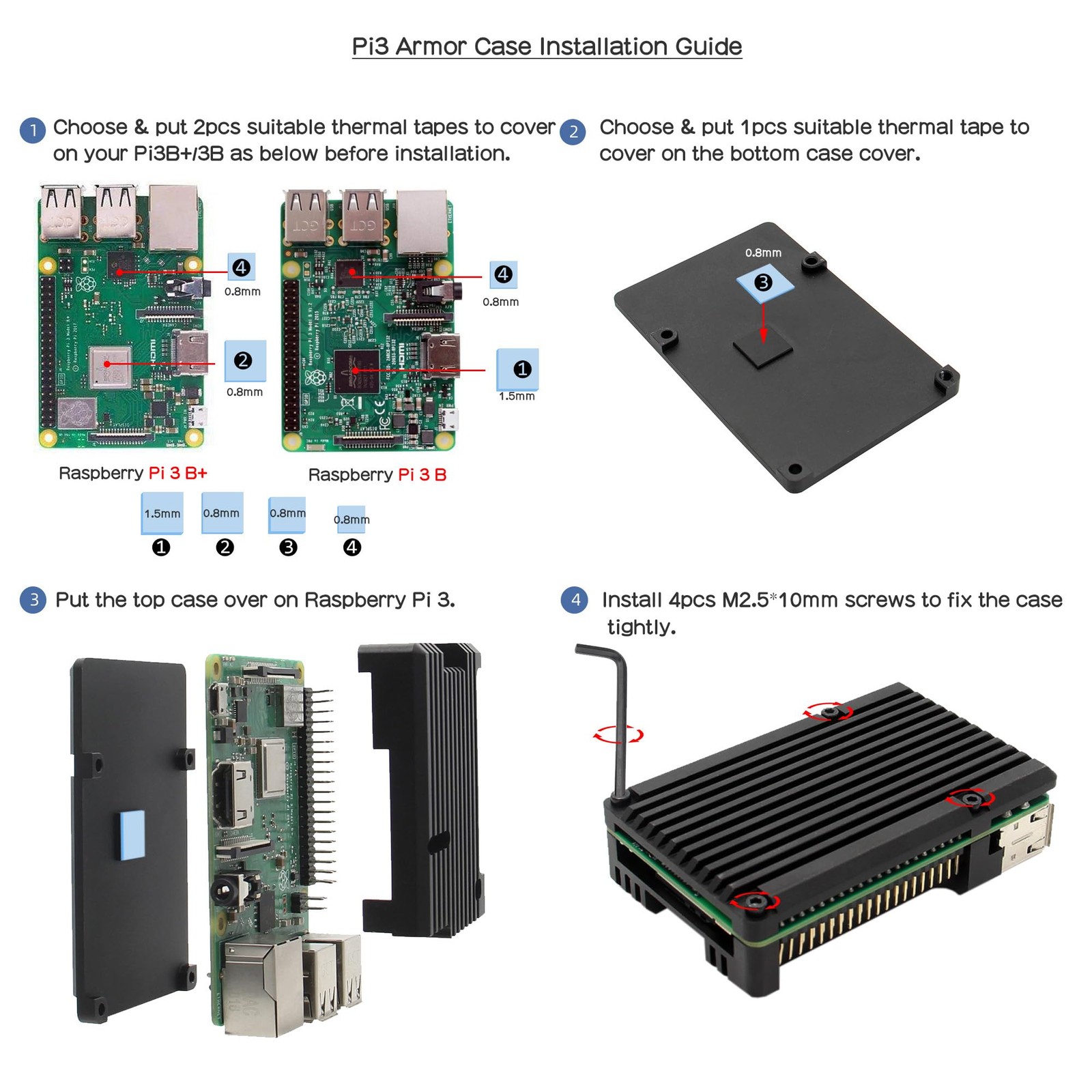 Aluminum Alloy Armor Passive Cooling Case for Raspberry Pi 3B /3B Black