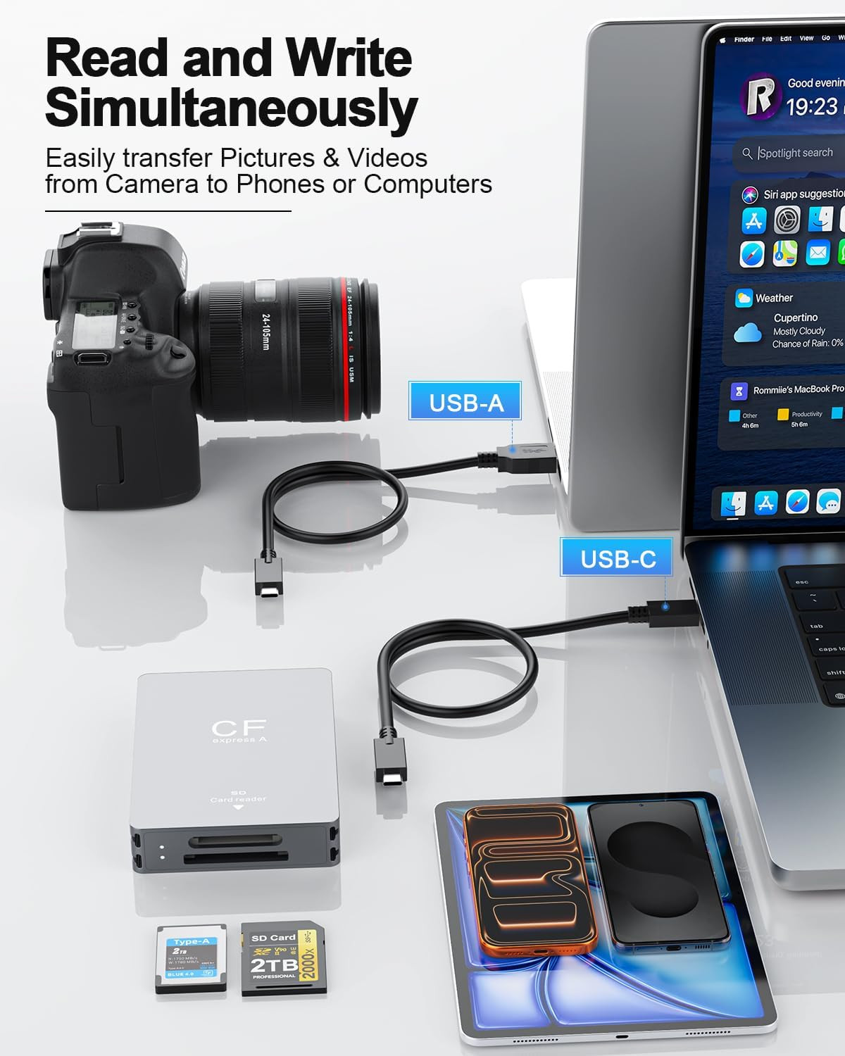 Cfexpress Type A and SD Dual-Slot Card Reader, 10Gbps USB 3.2 Gen 2