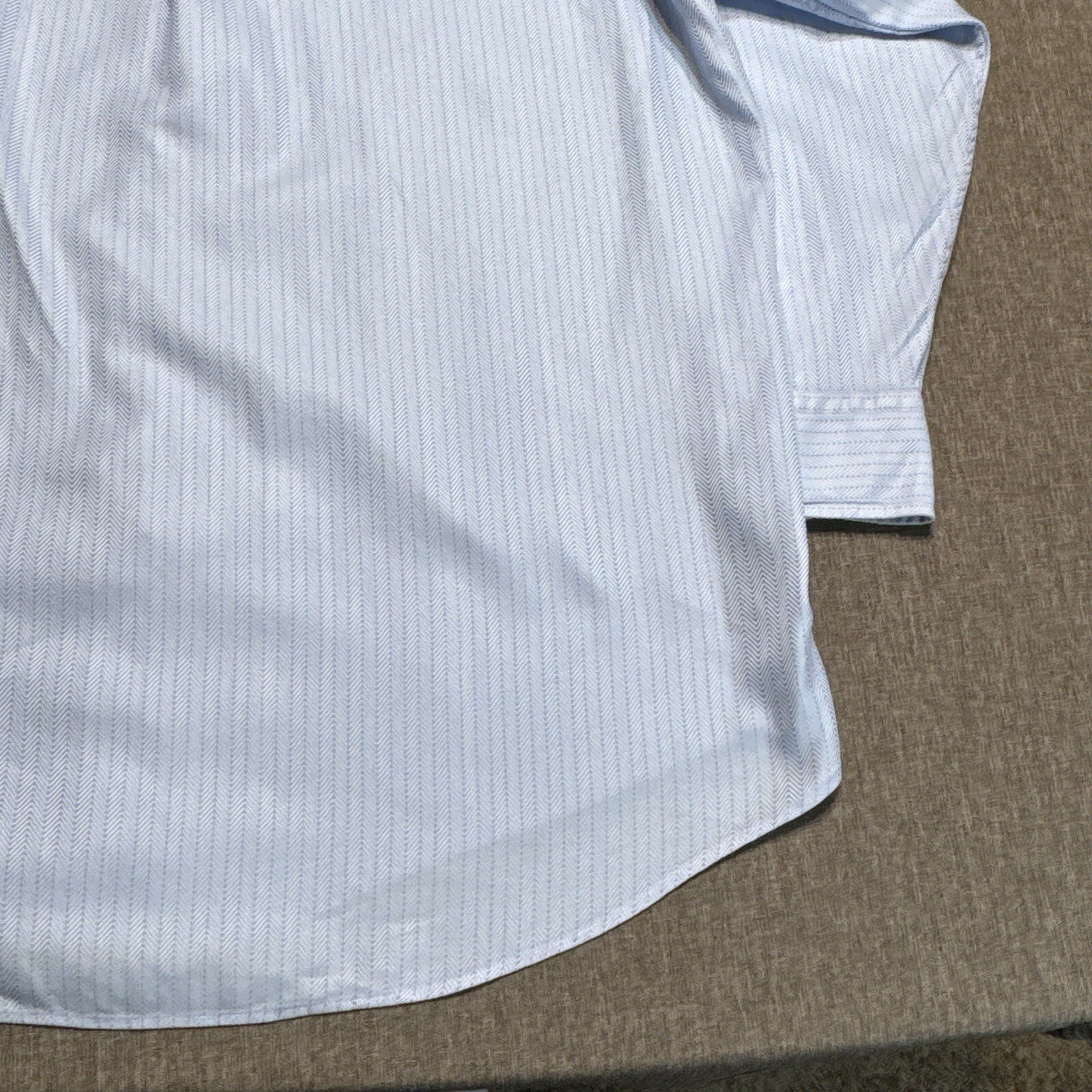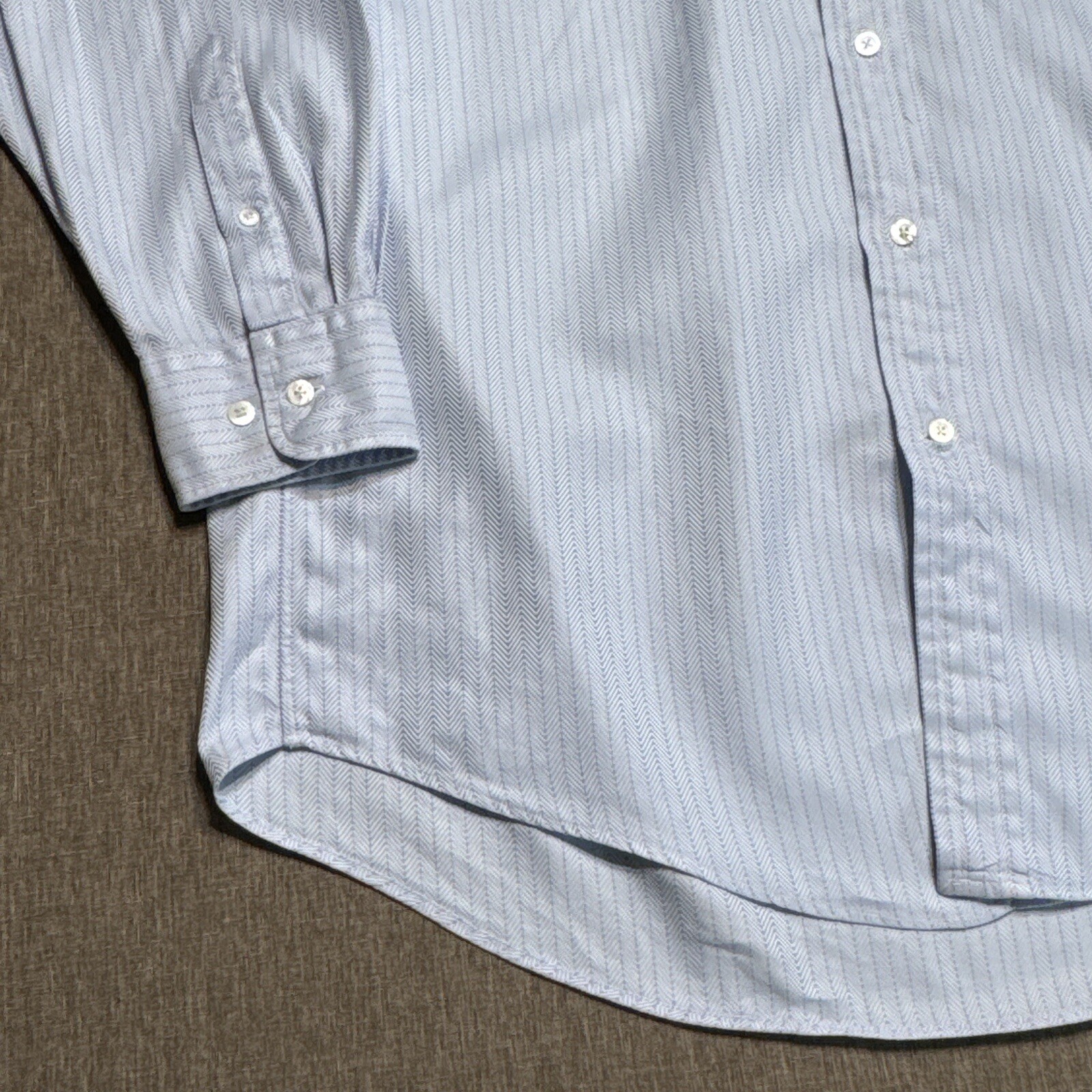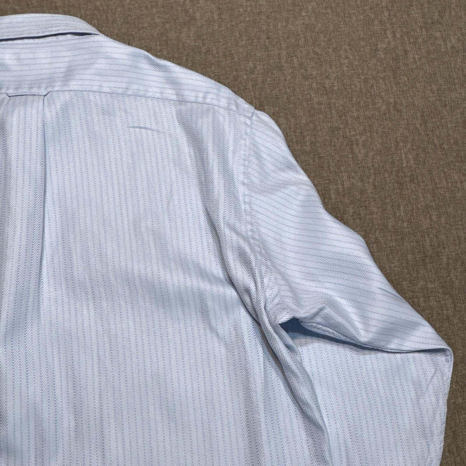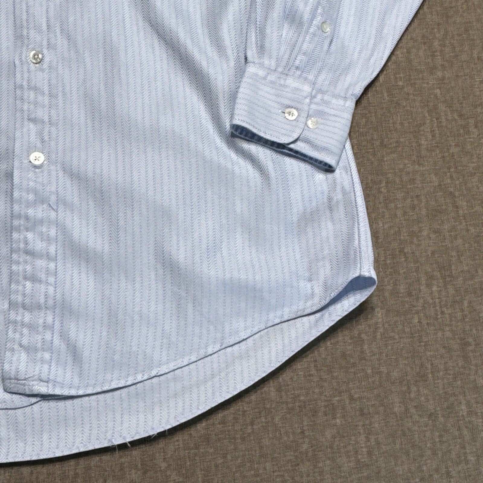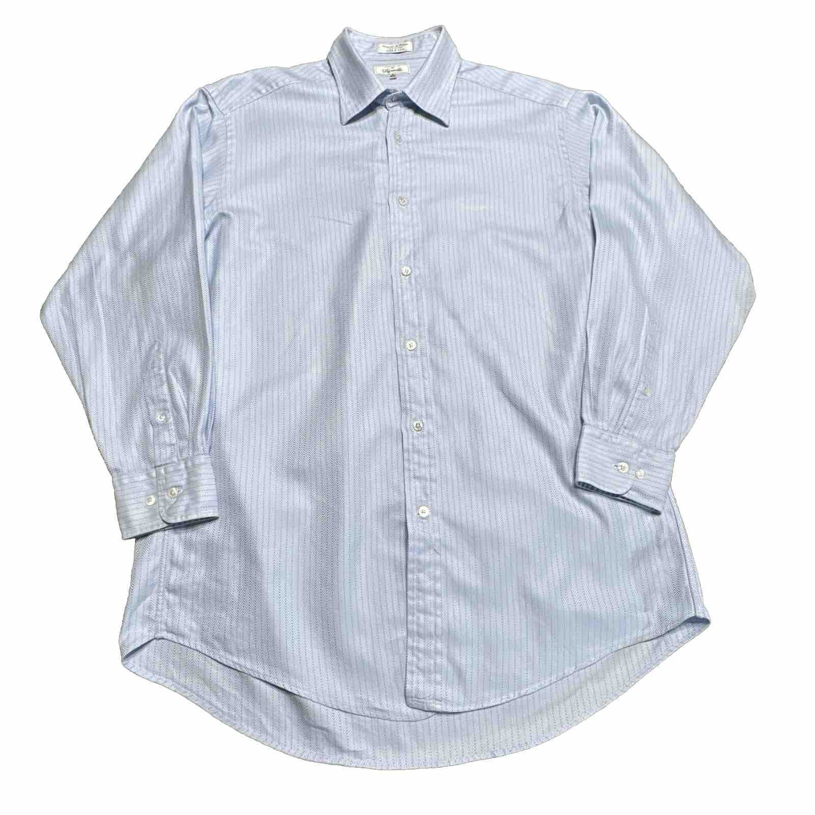 Vintage Faconnable Dress Shirt Mens 16.5 Herringbone Blue Button Front USA Made