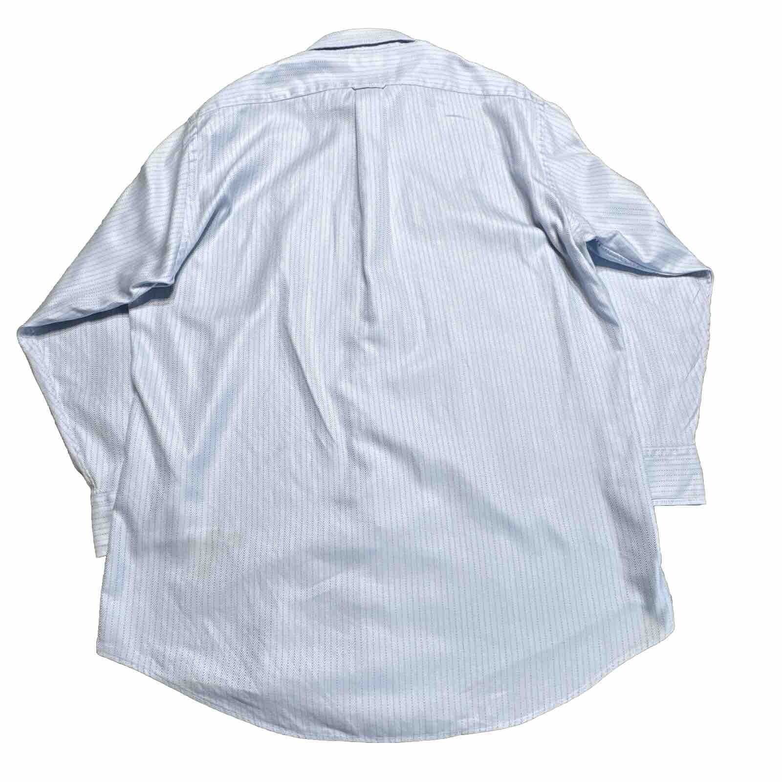 как выглядит Vintage Faconnable Dress Shirt Mens 16.5 Herringbone Blue Button Front USA Made фото