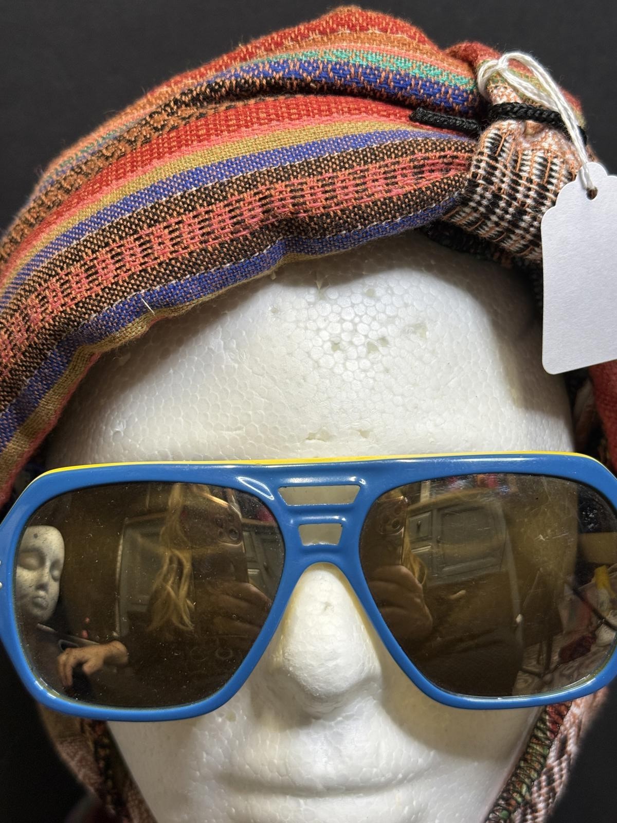 Vintage Foster Grant USA Blue Yellow White Mirrored Ski Sunglasses