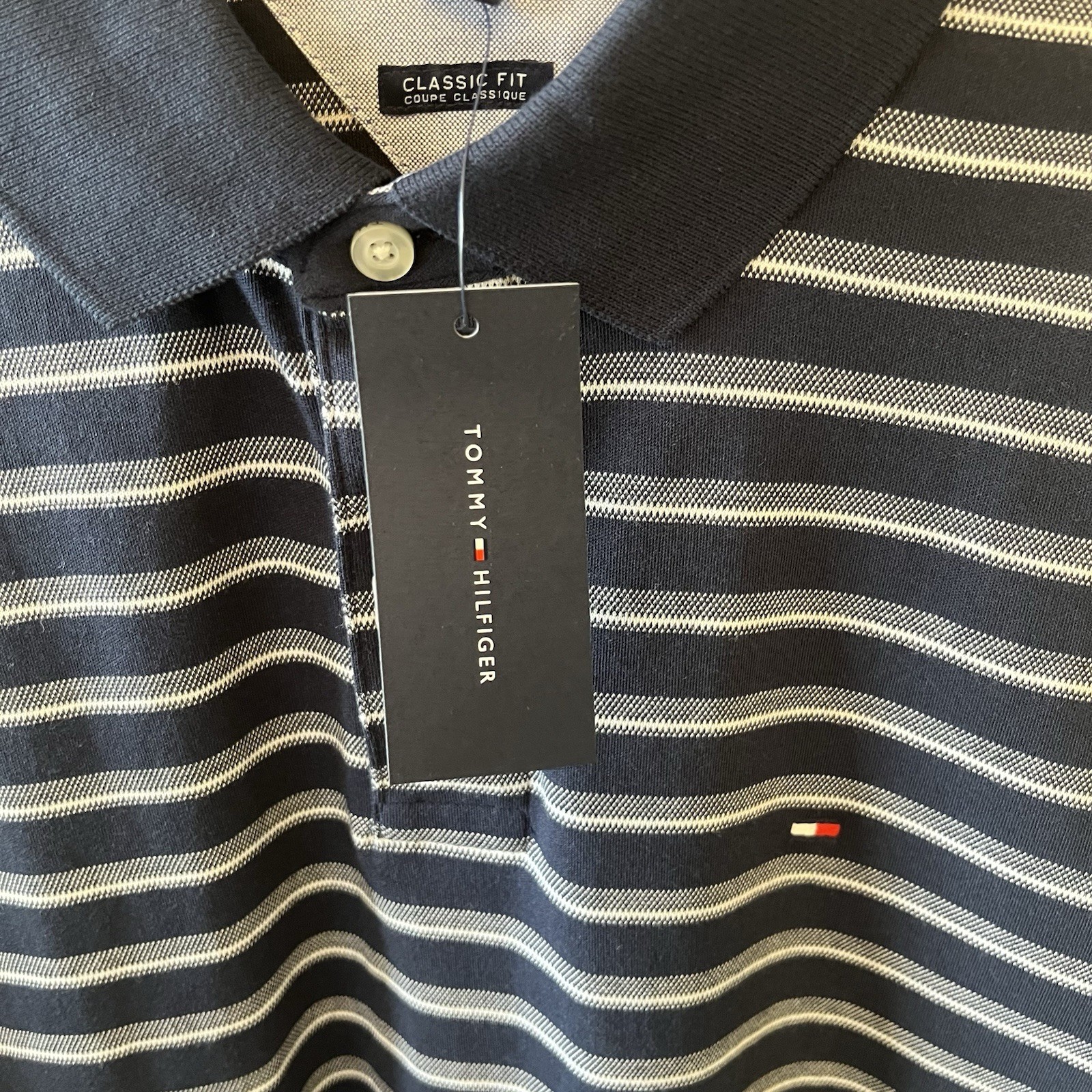 как выглядит NWT Tommy Hilfiger Classic Fit Short Sleeve Polo Navy Blue White Stripes Men