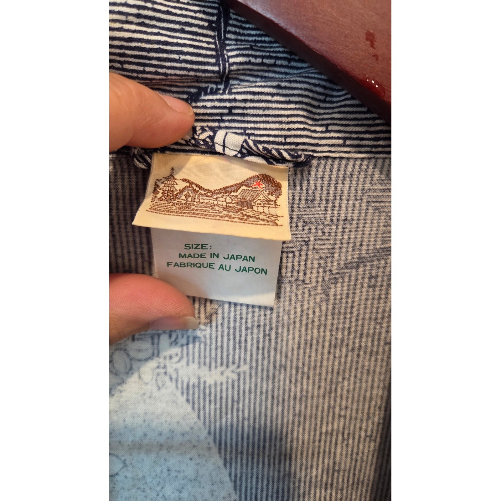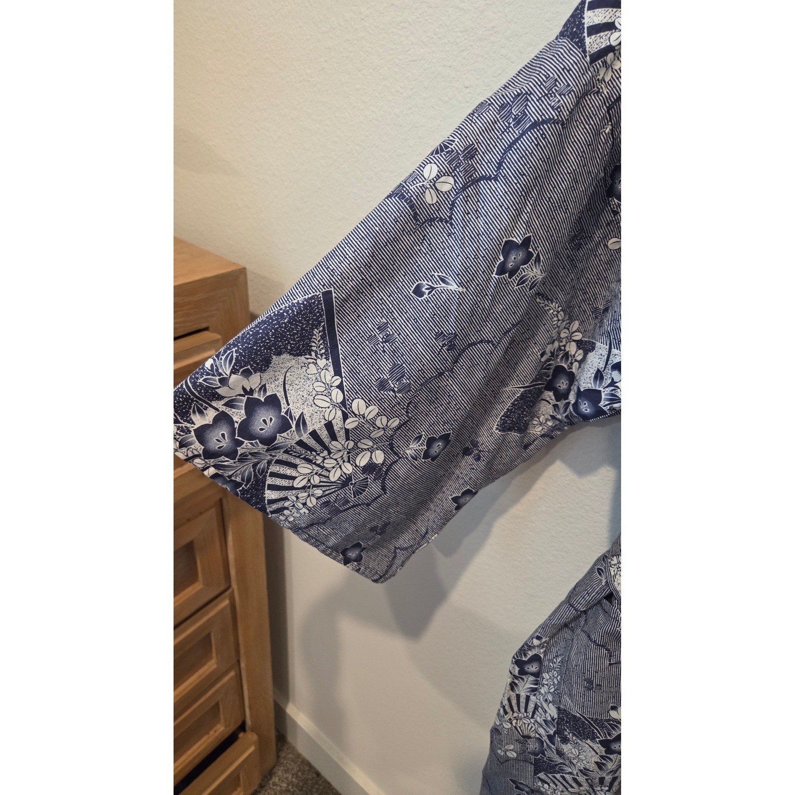 как выглядит Vintage Japanese Cotton Kimono Robe Indigo Blue Floral Fan Print Made in Japan фото