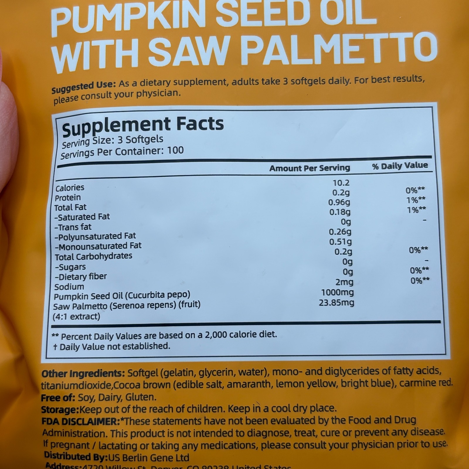 Ingredients: Pumpkin Seed Oil, Saw Palmetto