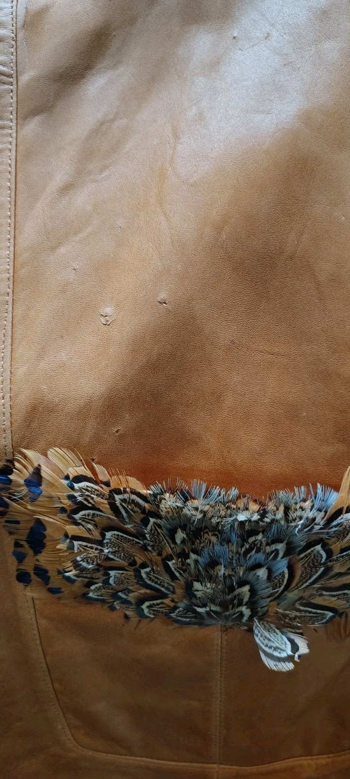 как выглядит Vintage 1960-70s Scully Feather Trim Leather Blazer Jacket фото