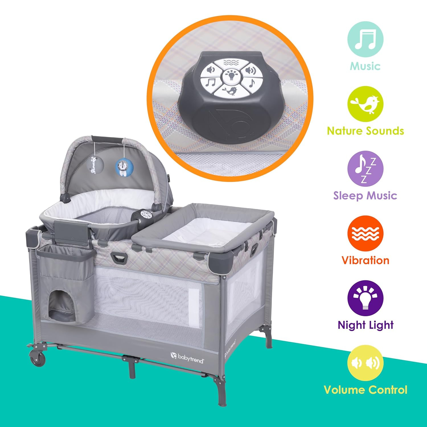 Lullaby Nursery Suite Ez-Fold Playard with Portable Rocking Lounger, Madrid Plai