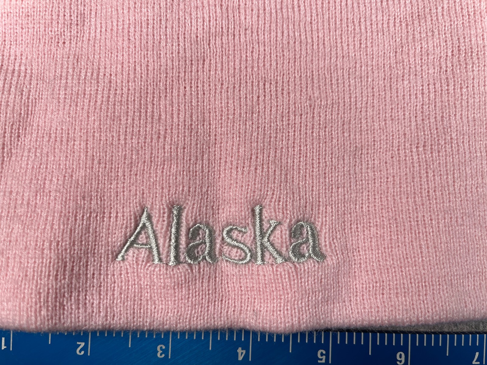 Alaska Beanie Toque Adult One Size Pink Knit 100 Acrylic Ski Embroidered