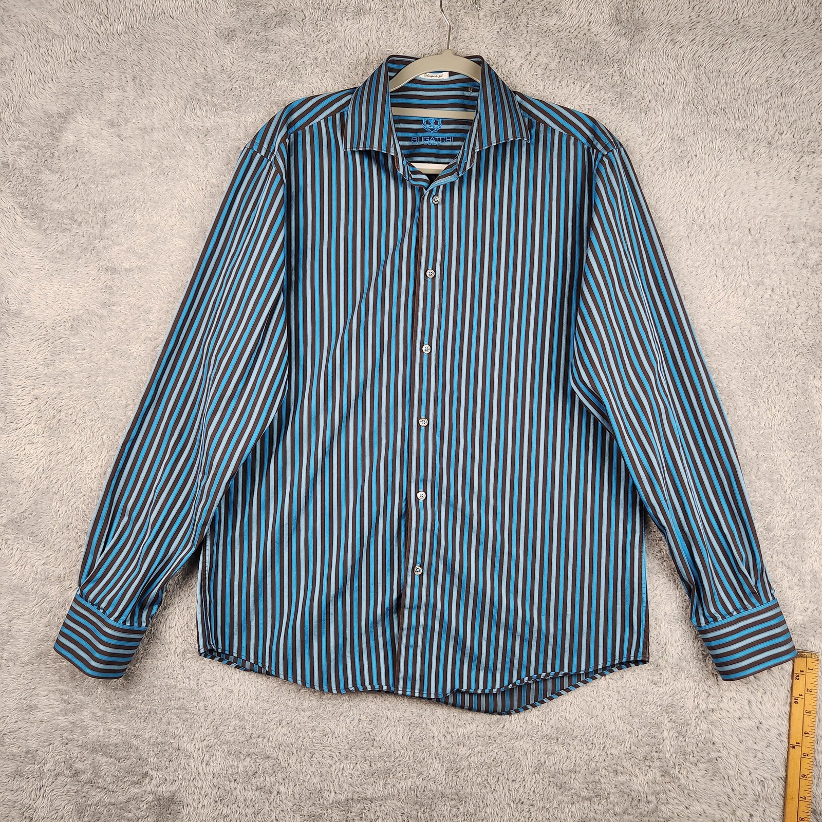как выглядит Bugatchi Shirt Mens Medium Blue Stripe Shaped Fit Dress Long Sleeve Business фото