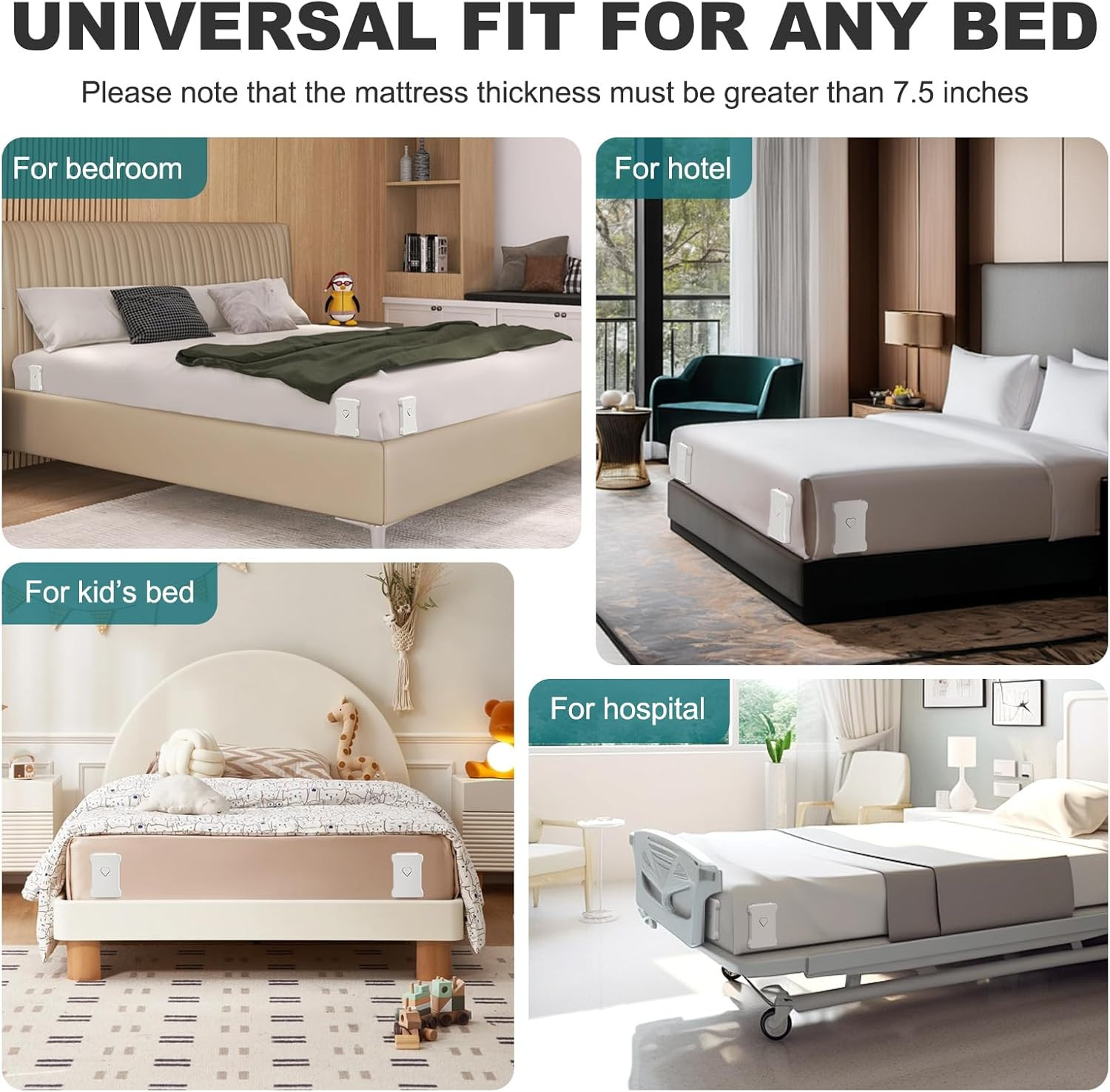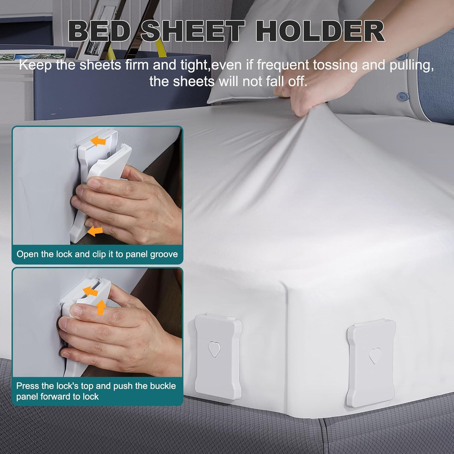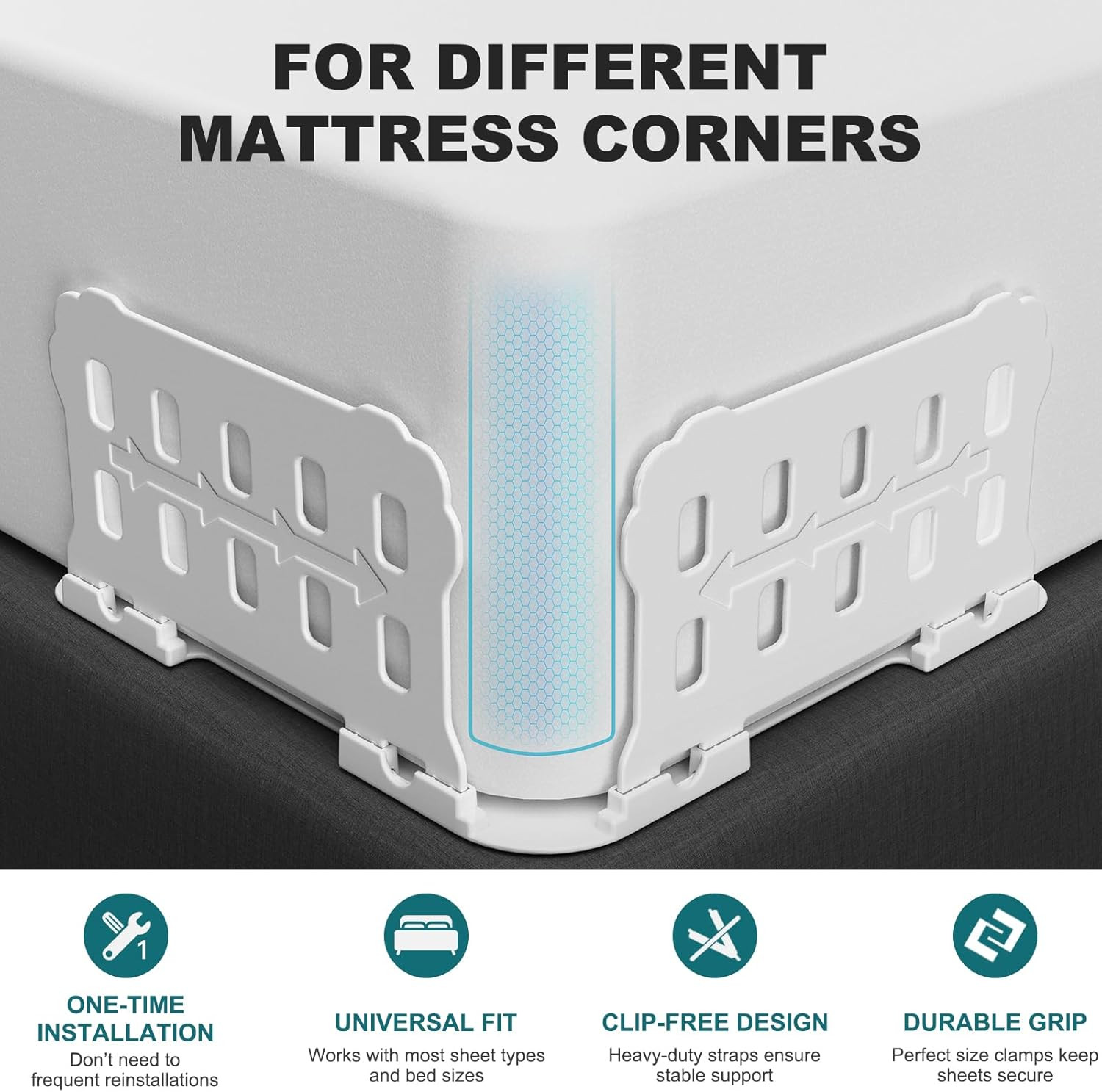 Premium Bed Sheet Holders with Reinforced Clips for All Mattress Sizes White