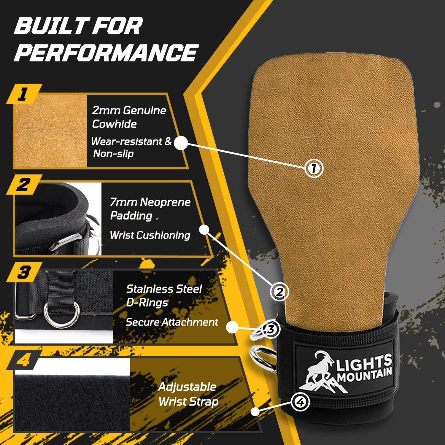 Leather Weight Lifting Straps with D Rings and Adjustable Wrist Support