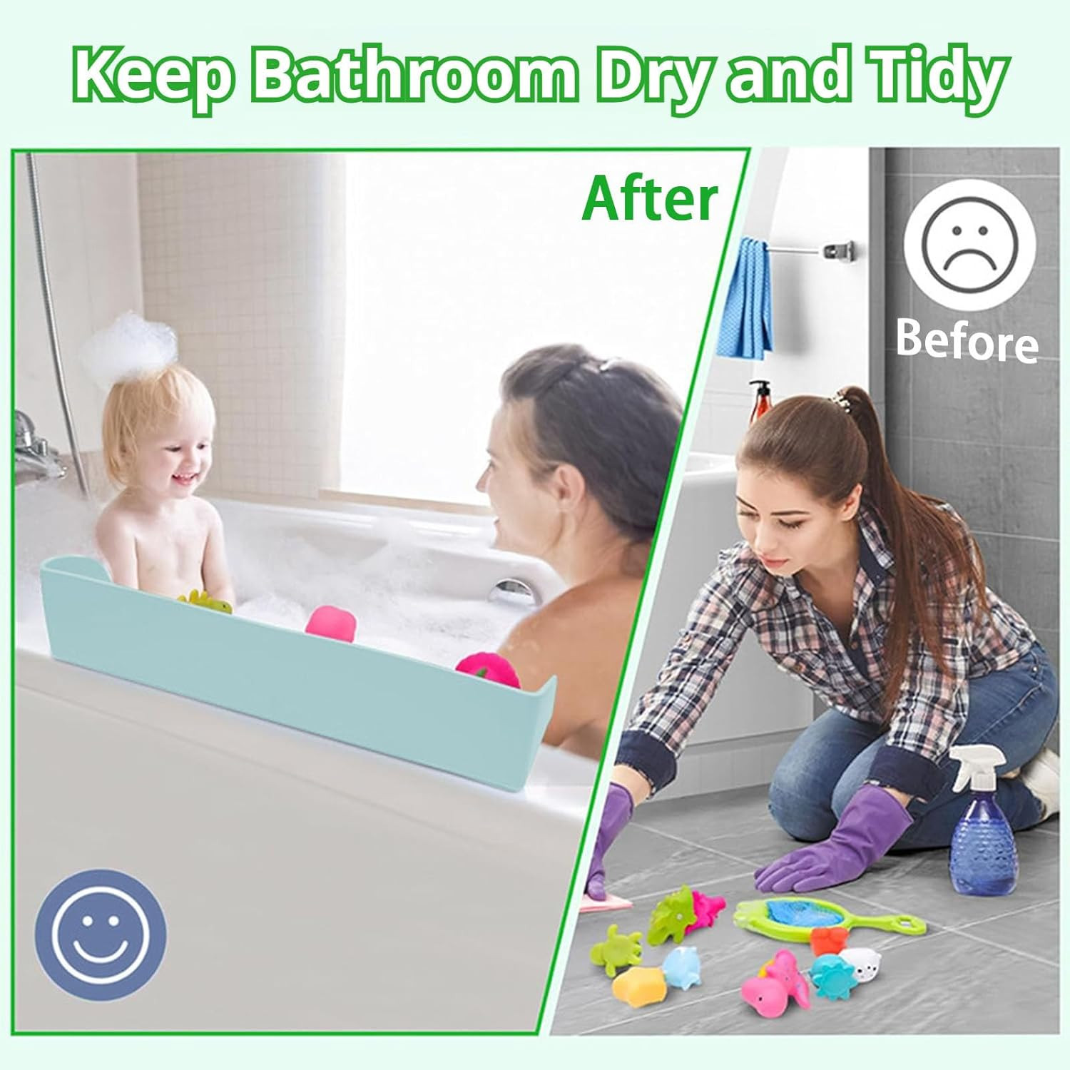 Silicone Bathtub Splash Guard for Kids with Suction Cups and Toy Holder