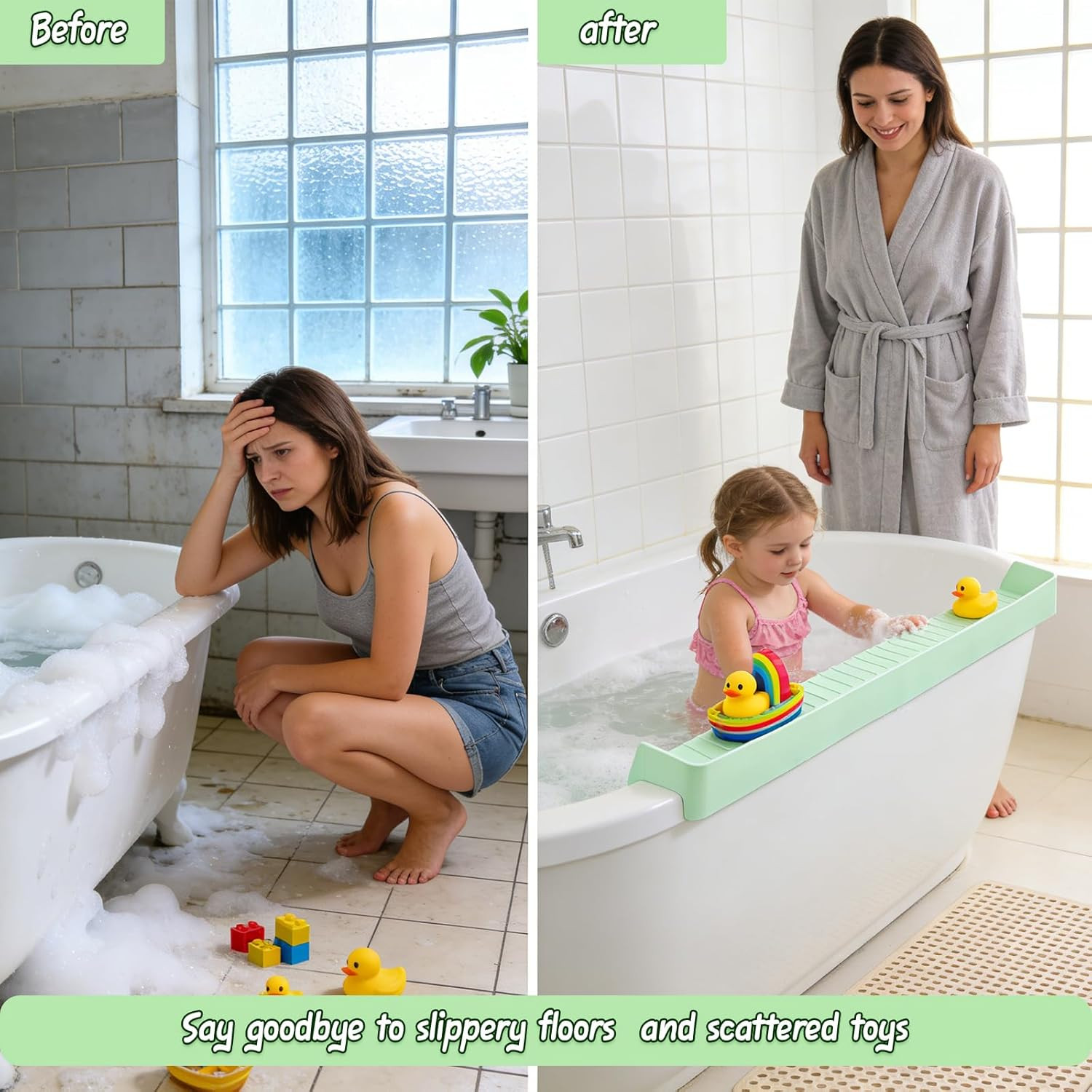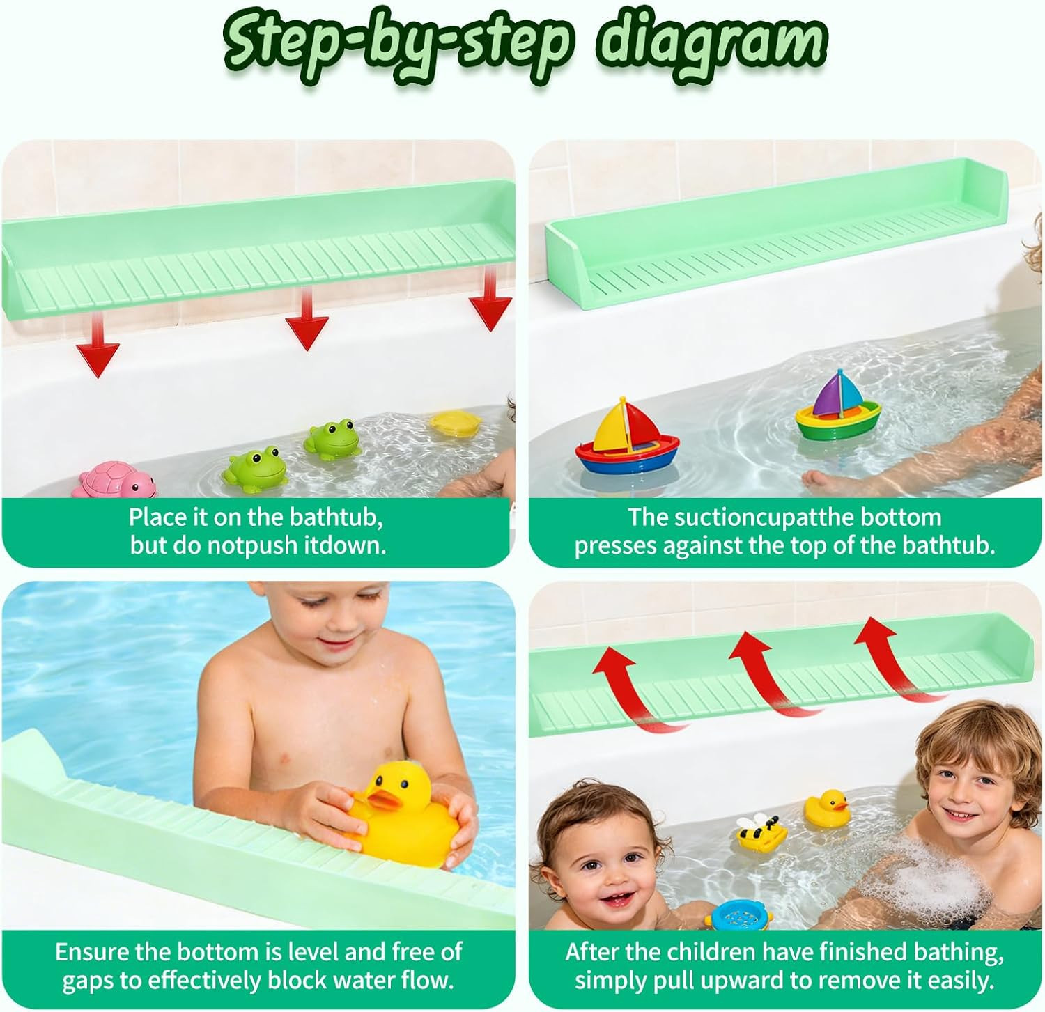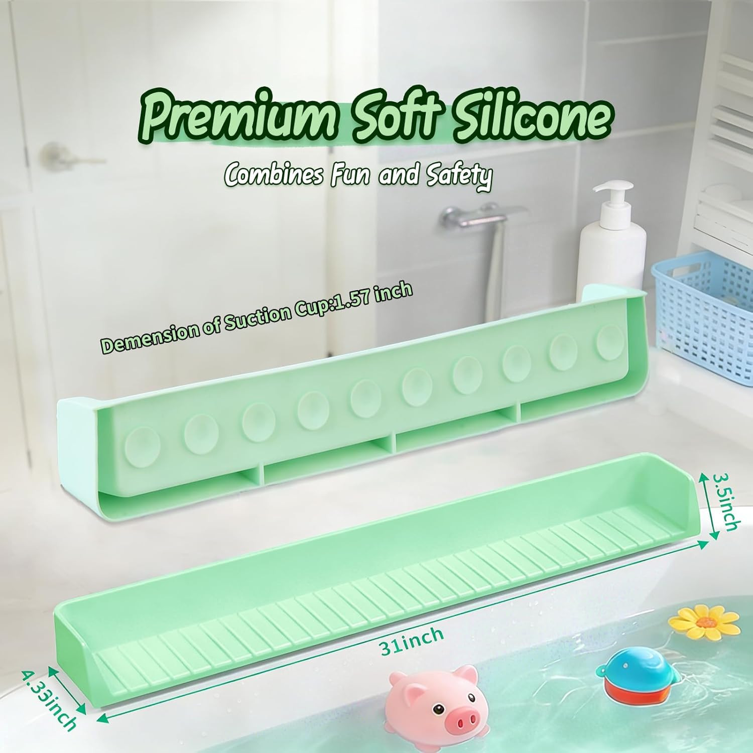Silicone Bathtub Splash Guard with Suction Cups for Kids - Green