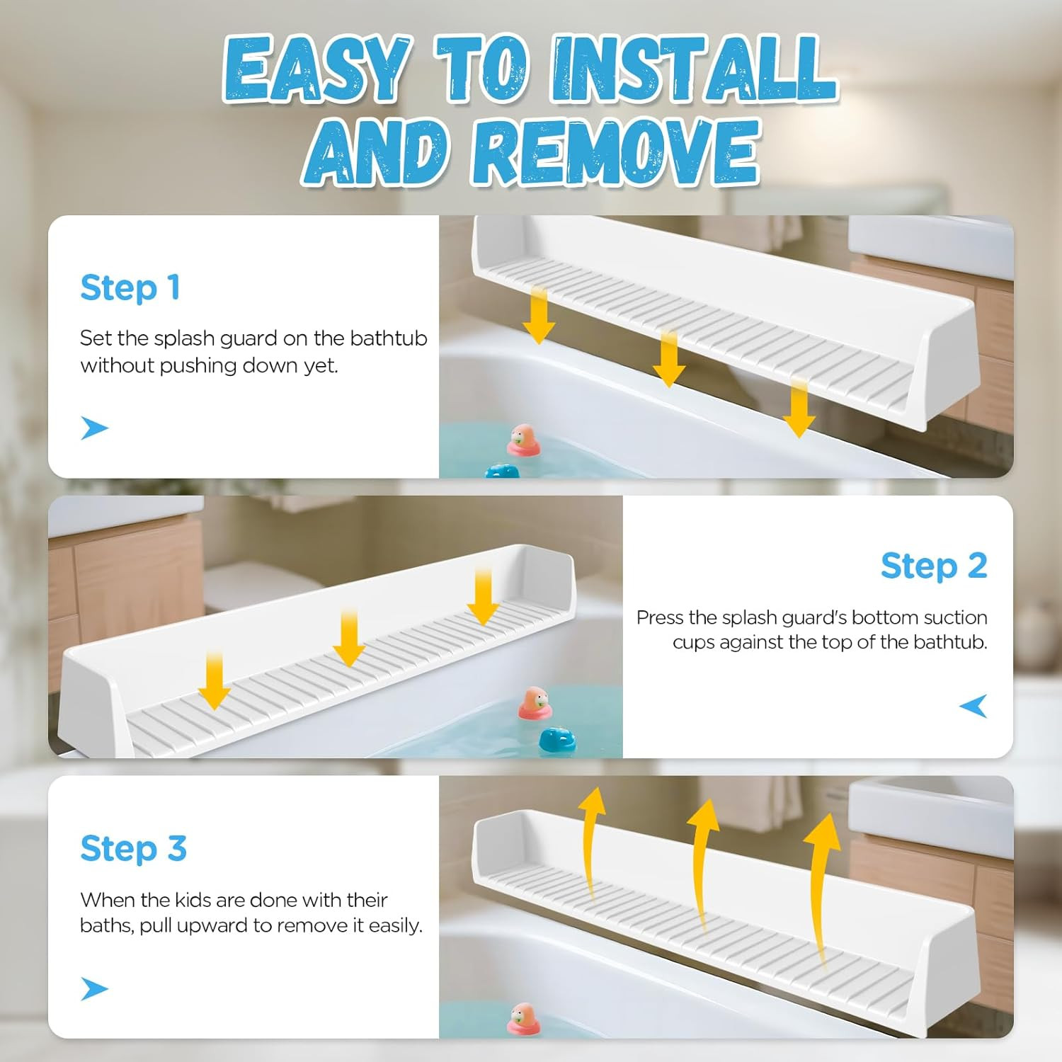 Silicone Bathtub Splash Guard with Suction Cups for Kids - White
