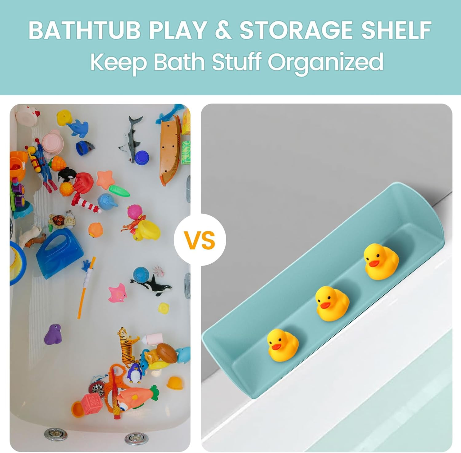 Silicone Bathtub Splash Guard with Suction Cups and Toy Organizer Green