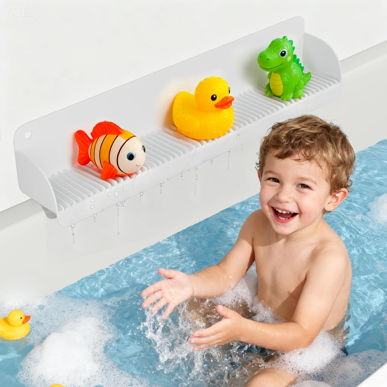 Silicone Bathtub Splash Guard with Suction Cups - Easy Clean Foldable Tray