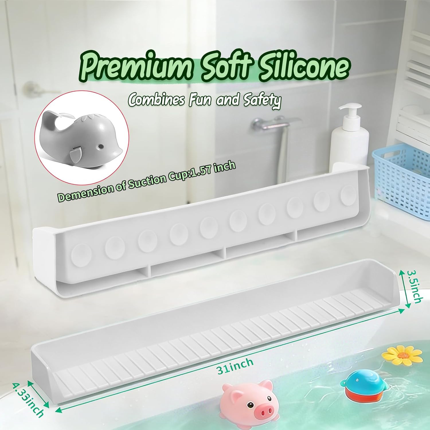 Silicone Bathtub Splash Guard with Suction Cups - Water Spill Prevention for Kid