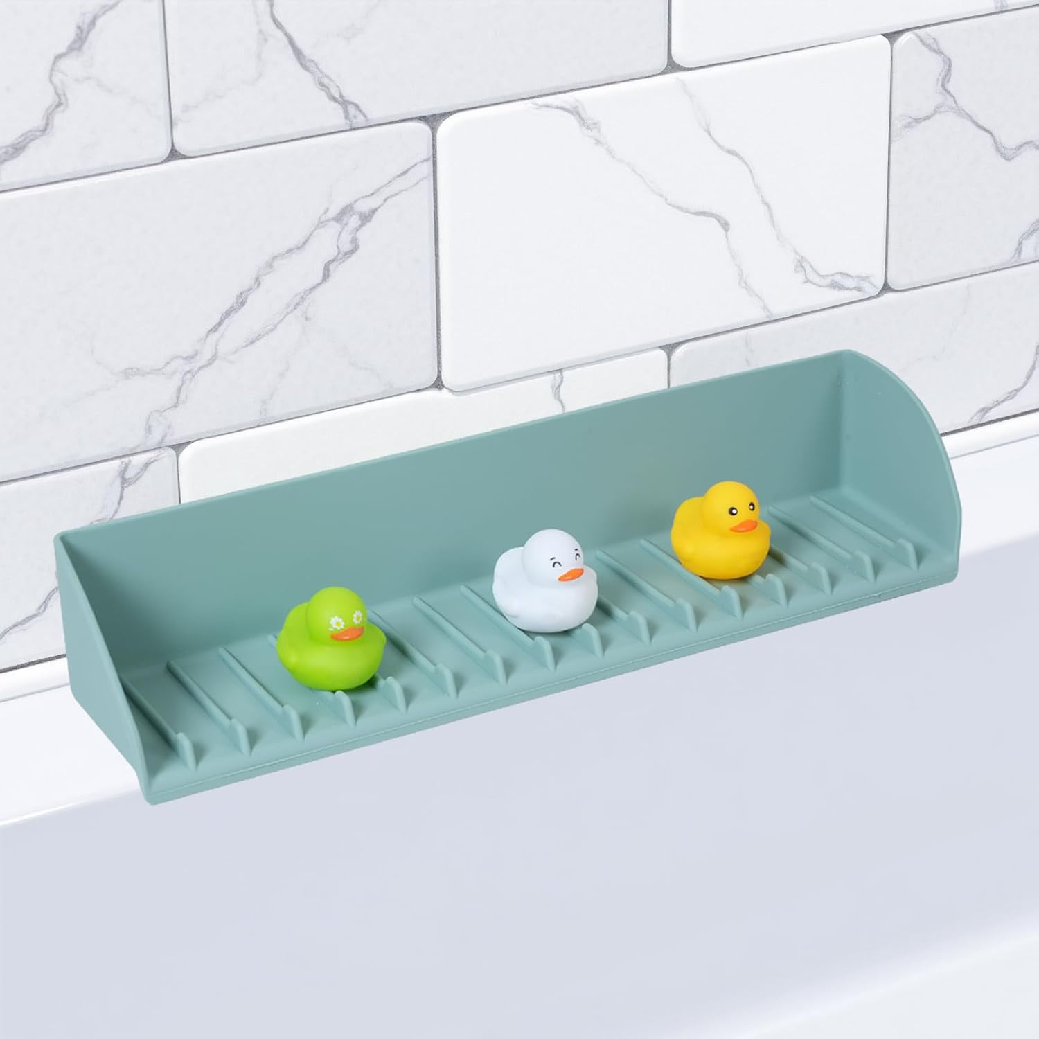 Kids' Bathtub Splash Guard with Toy Storage, Aqua Blue, Easy Installation