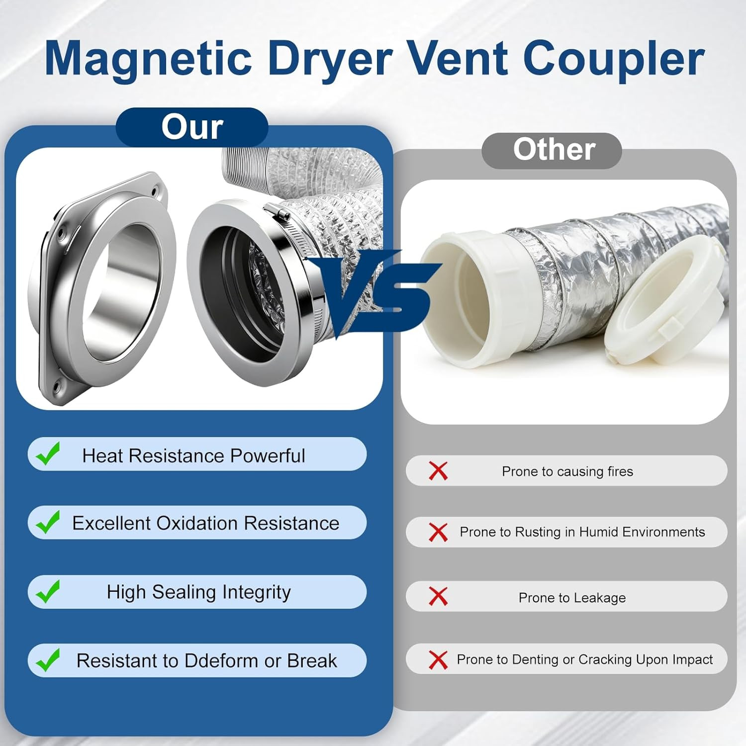 Magnetic Dryer Vent Coupling with 3.3Ft Duct and Airtight Seal Kit