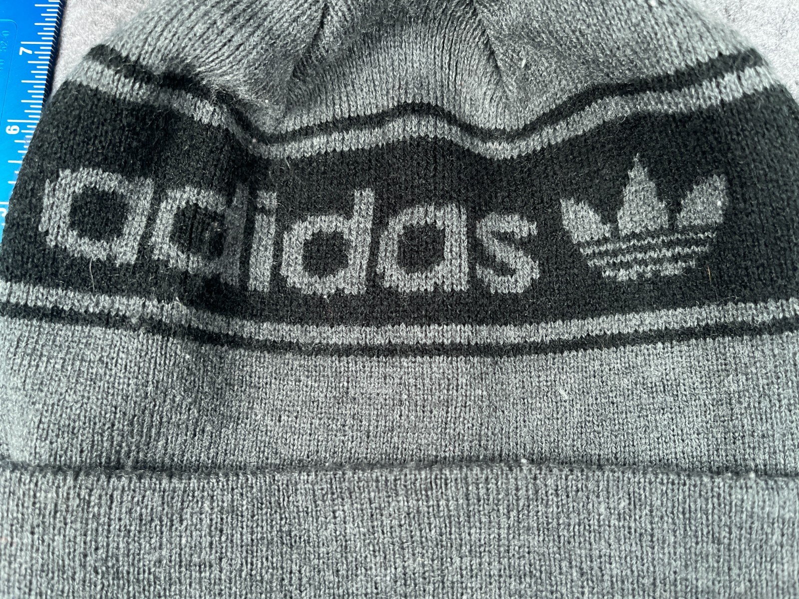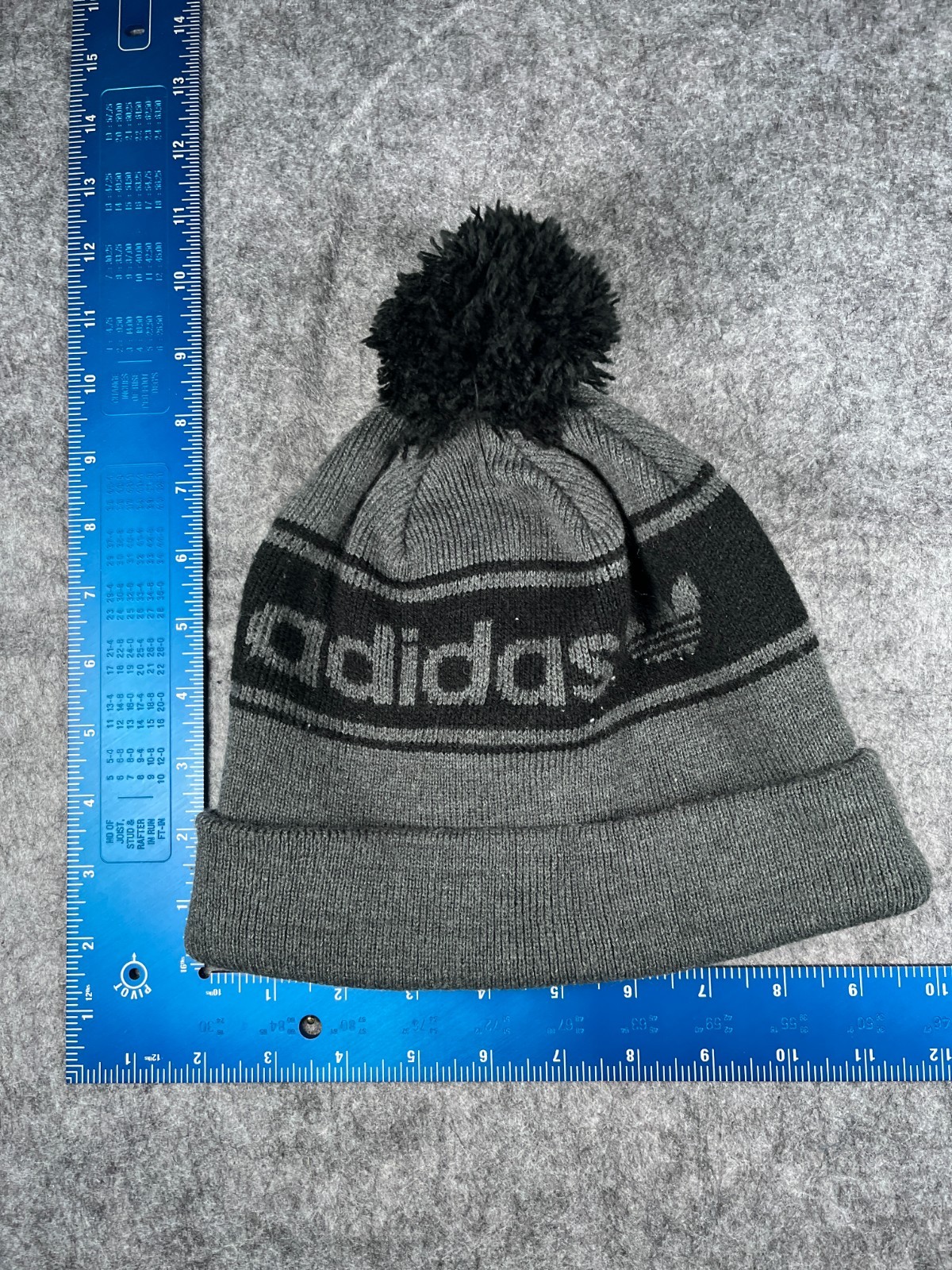 как выглядит Adidas Beanie Toque Adult One Size Gray Black Stripe Knit 100 Acrylic Logo Pom фото