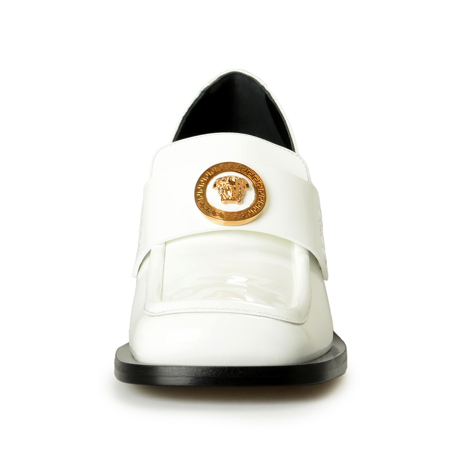 Versace Women's Gold Medusa Patent Leather Heeled Moccasins Shoes US 10 IT 40