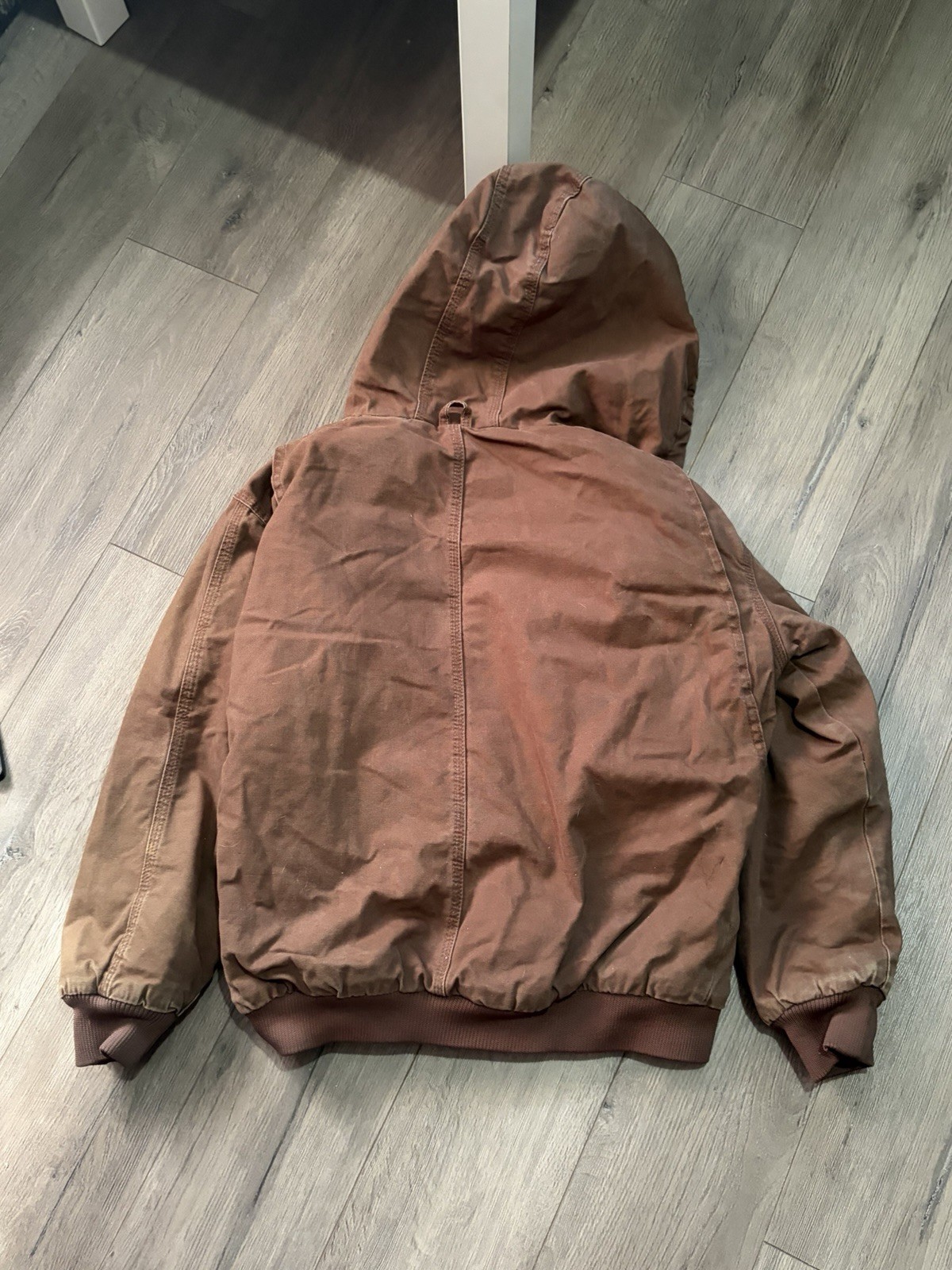 как выглядит VINTAGE KIDS Brown workwear Carhartt style canvas insulated quilted lined jacket фото