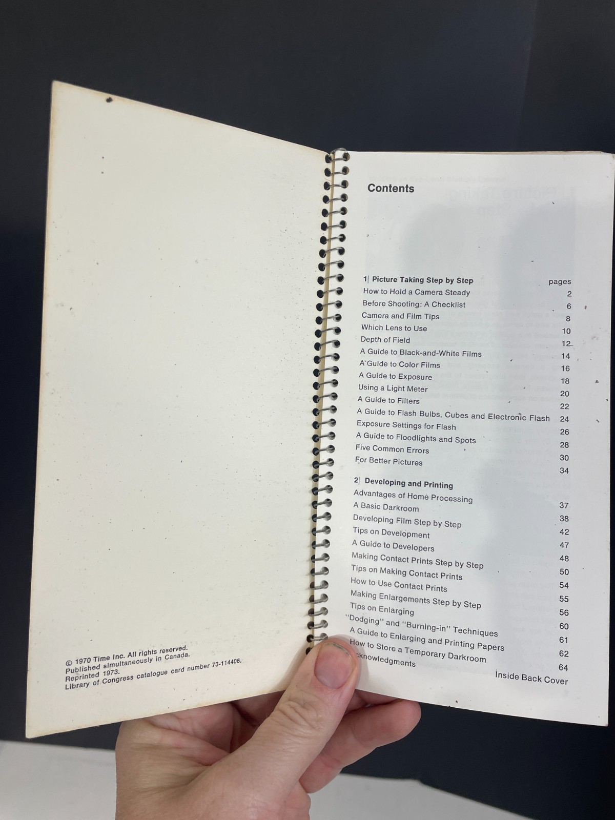 Time Life Library of Photography Photographer's Handbook Spiral Bound 1973