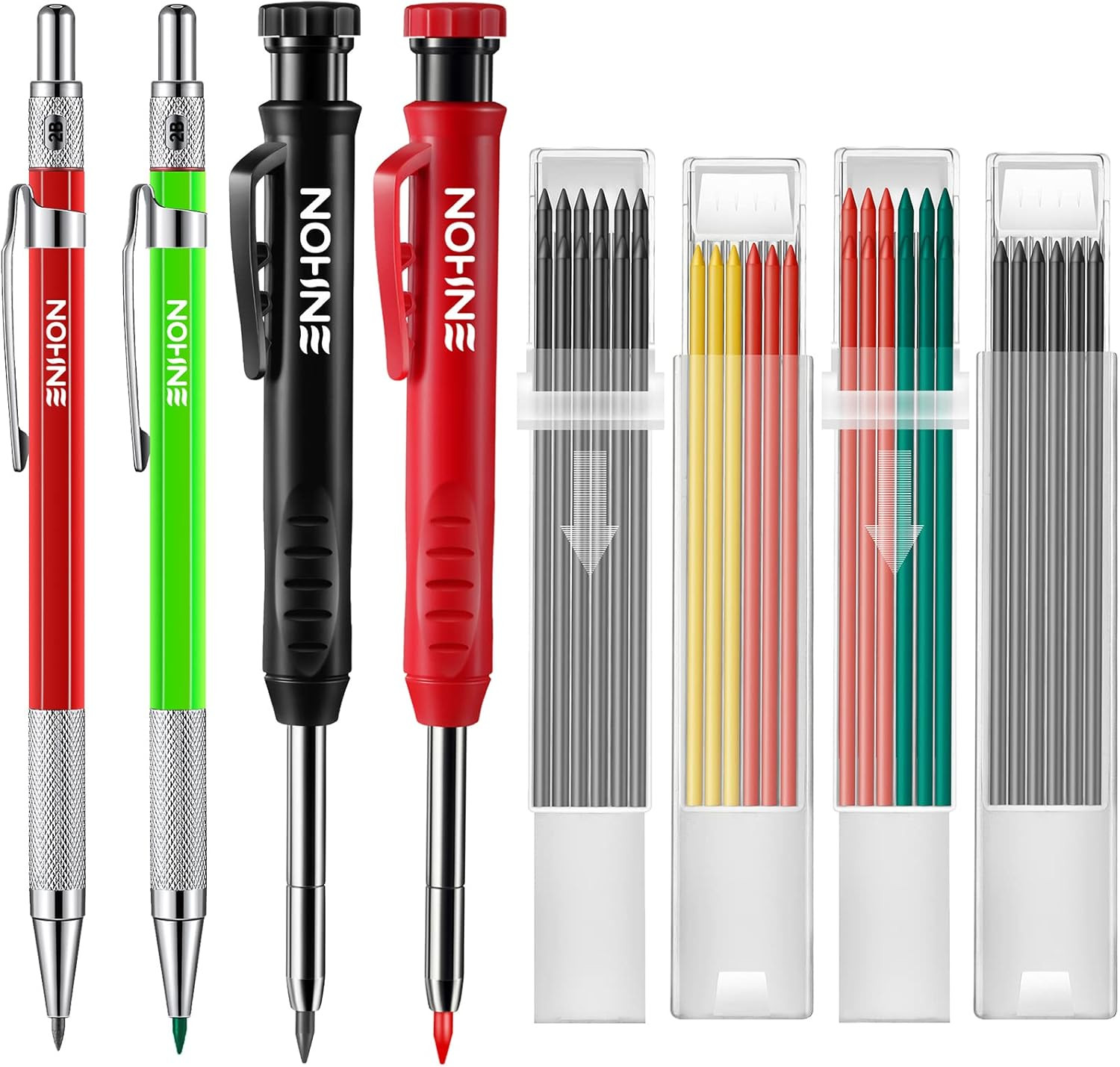 Enhon 4 Pack Carpenter Pencil Set with Sharpener, Mechanical Woodworking Pencils