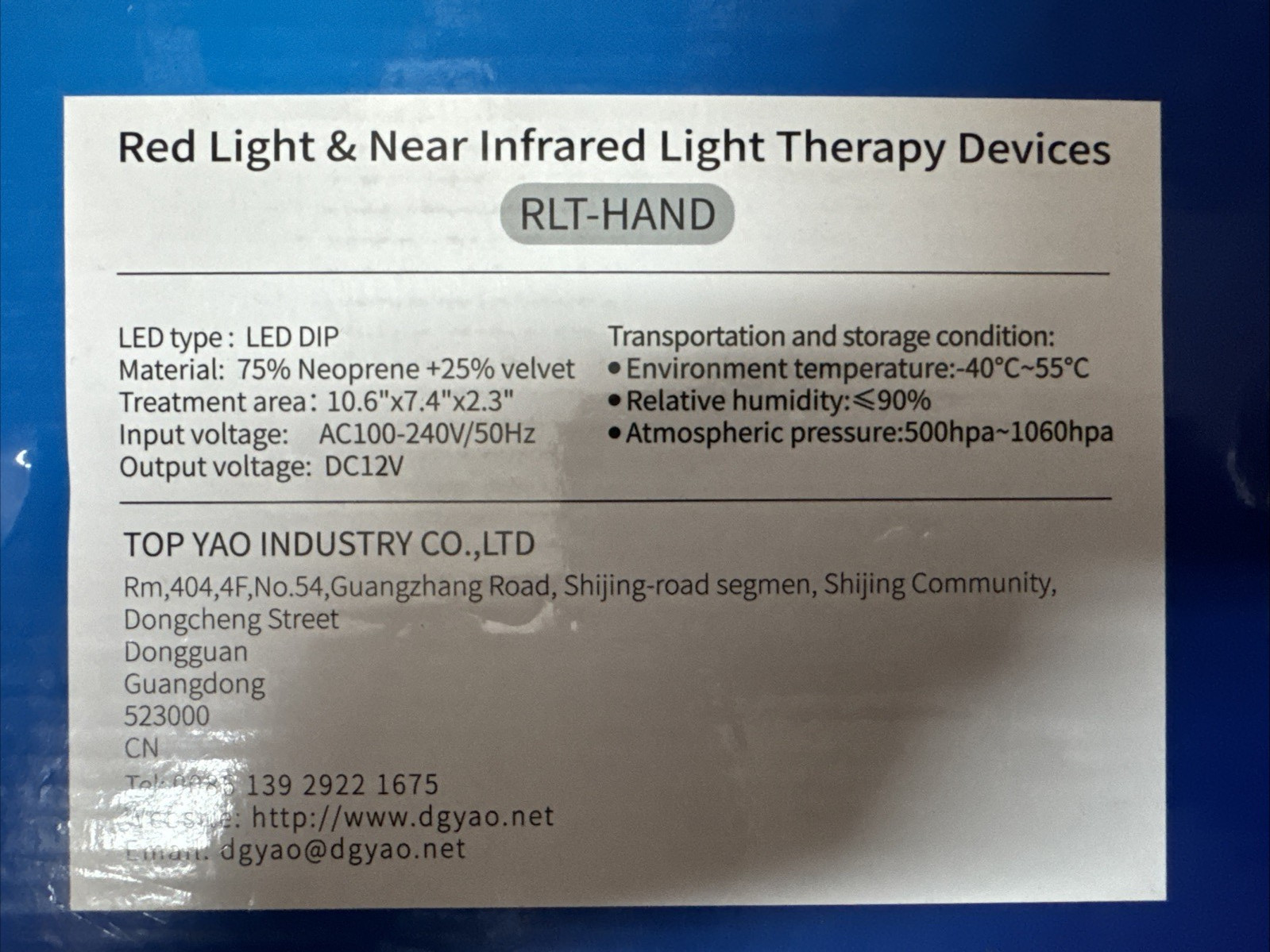 Red Light RLT-Hand Therapy Device, Near Infrared Light Therapy Glove New Unused