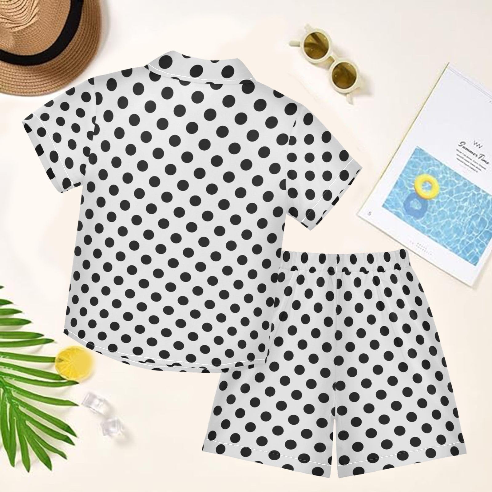 Boys 2 Piece Outfit Button Down Shirt and Short Sets Polka Dots Black White P...