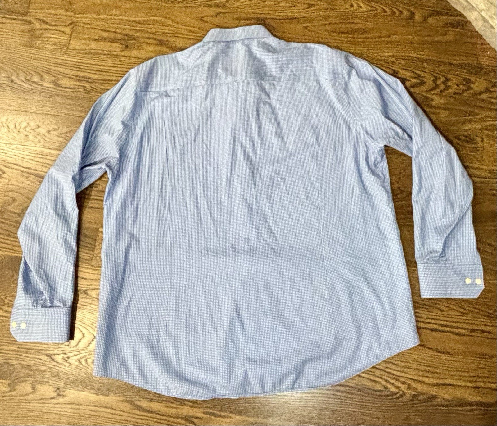 как выглядит Egara Slim Fit Geometric Blue White Non-Iron Mens Dress Shirt XXL Long Sleeve фото