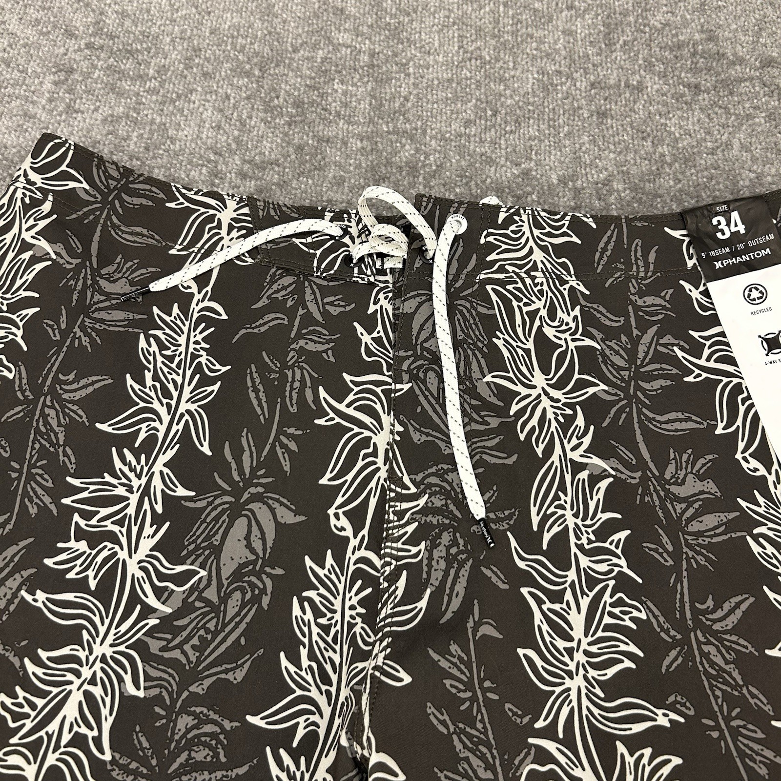 Hurley Phantom Board Shorts Mens 34 Gray Floral Quick Dry Eco Weekender Swim NEW