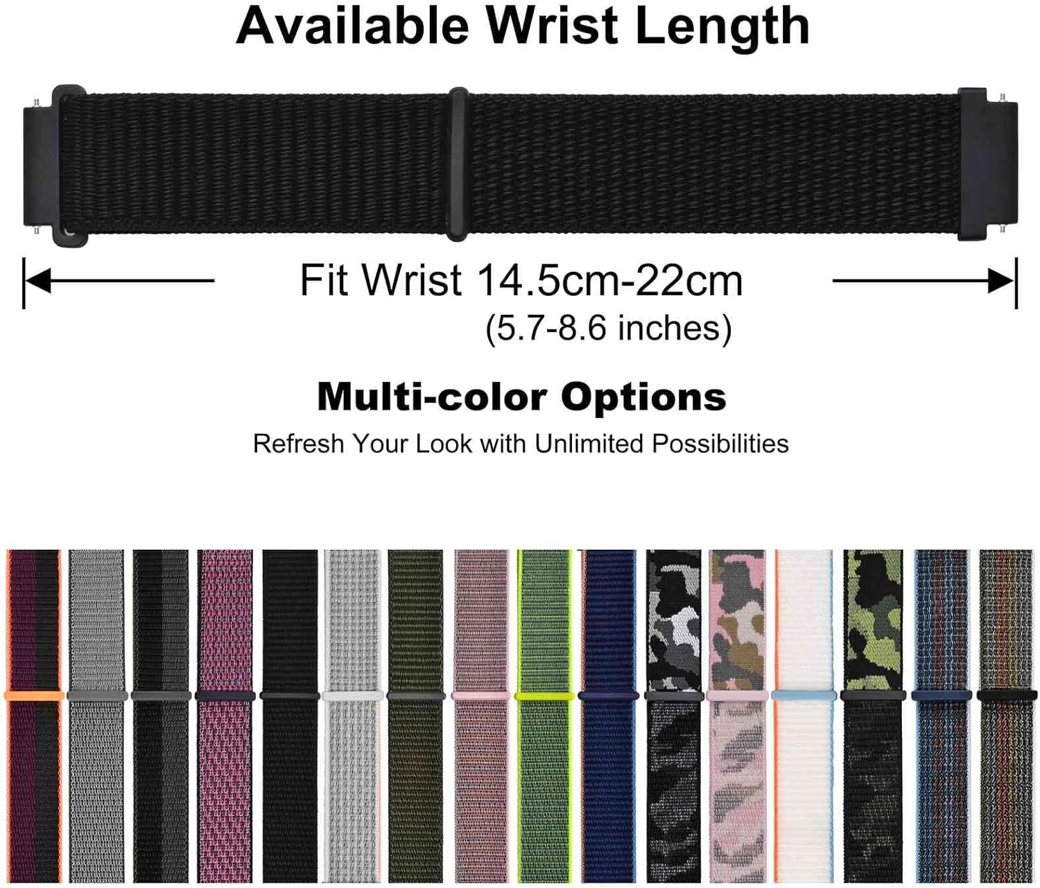 20Mm Adjustable Nylon Watch Band, Quick Release Sport Loop Strap Black