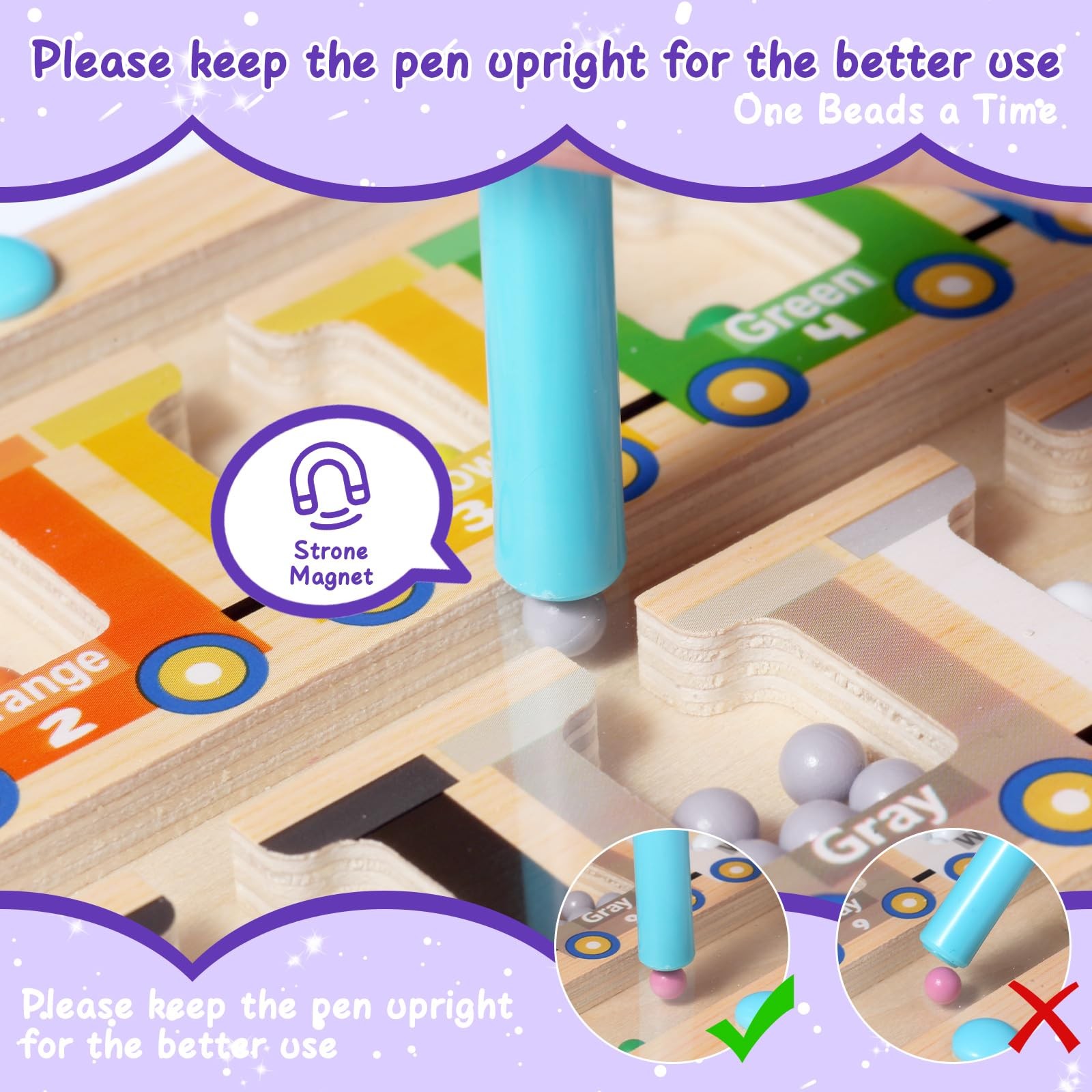 Magnetic Color and Number Maze, Montessori Toys for 3 4 5 Year Old, Wooden Ma...