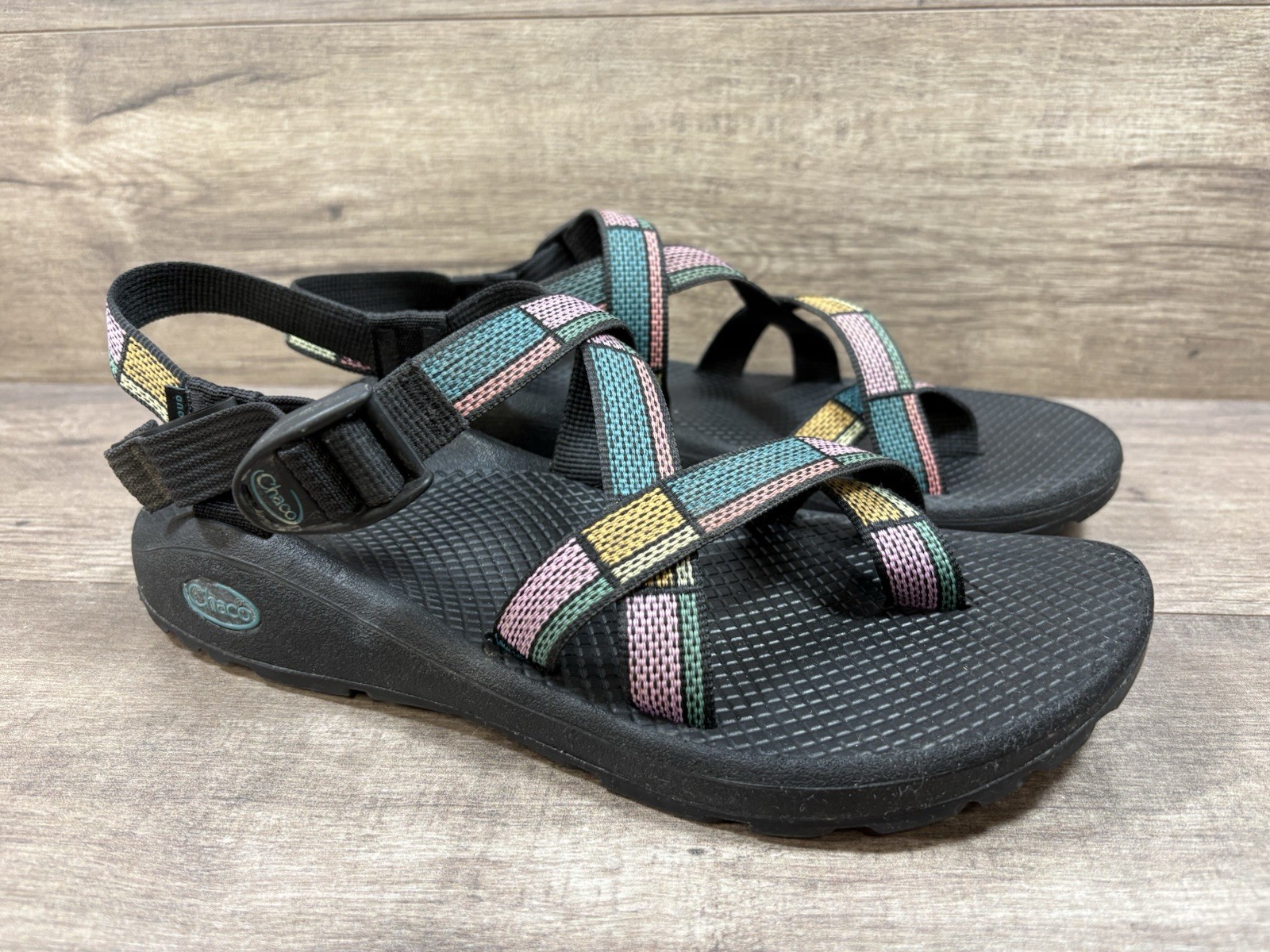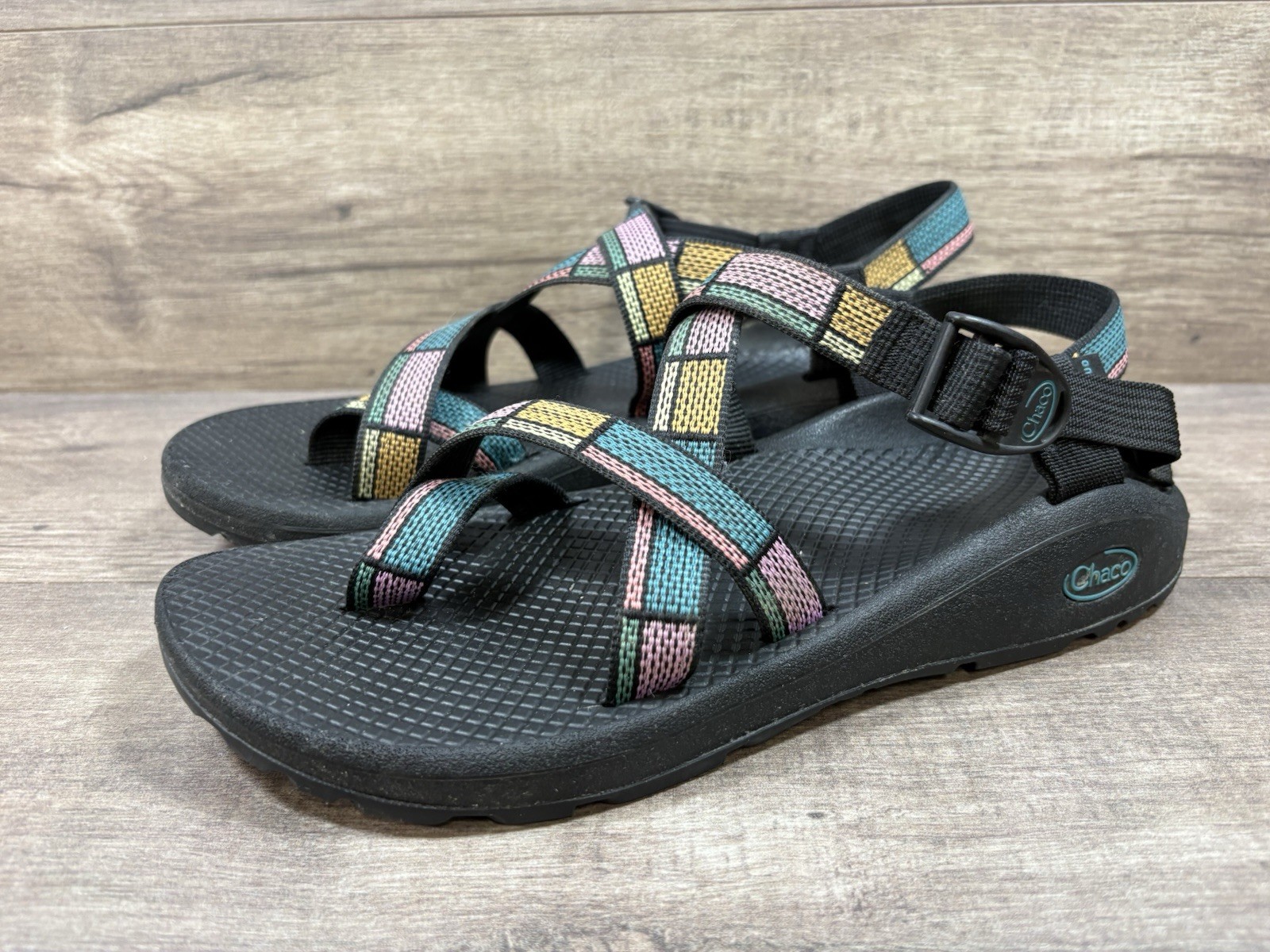 Chaco Z/Cloud 2 Sandals geometric Black Hiking Camp ChacoCloud Womens Size 10