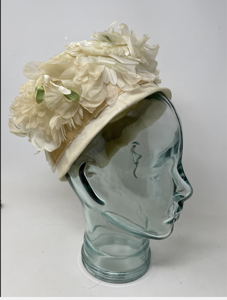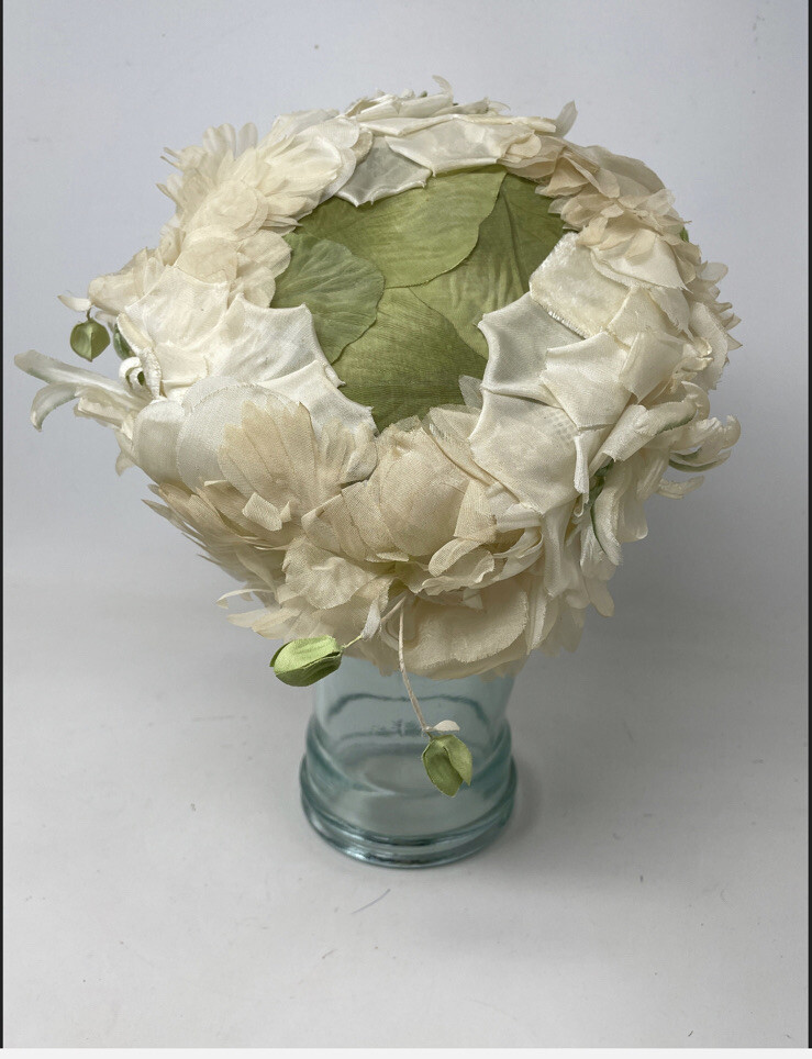 Vintage 1950s Ivory Floral Half Hat Bandeau Flower Cap Fascinator Bridal Hat