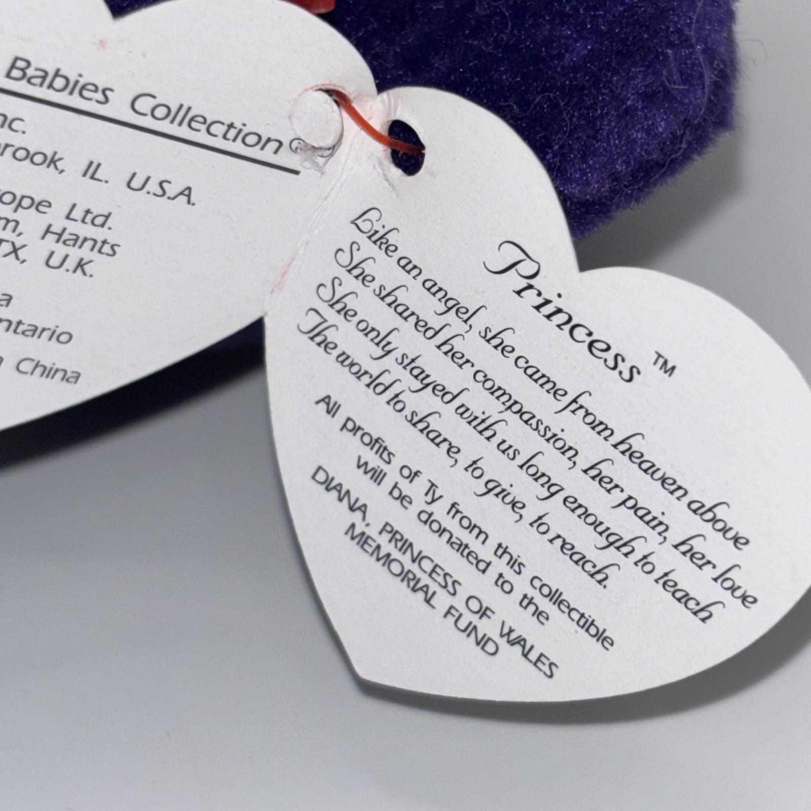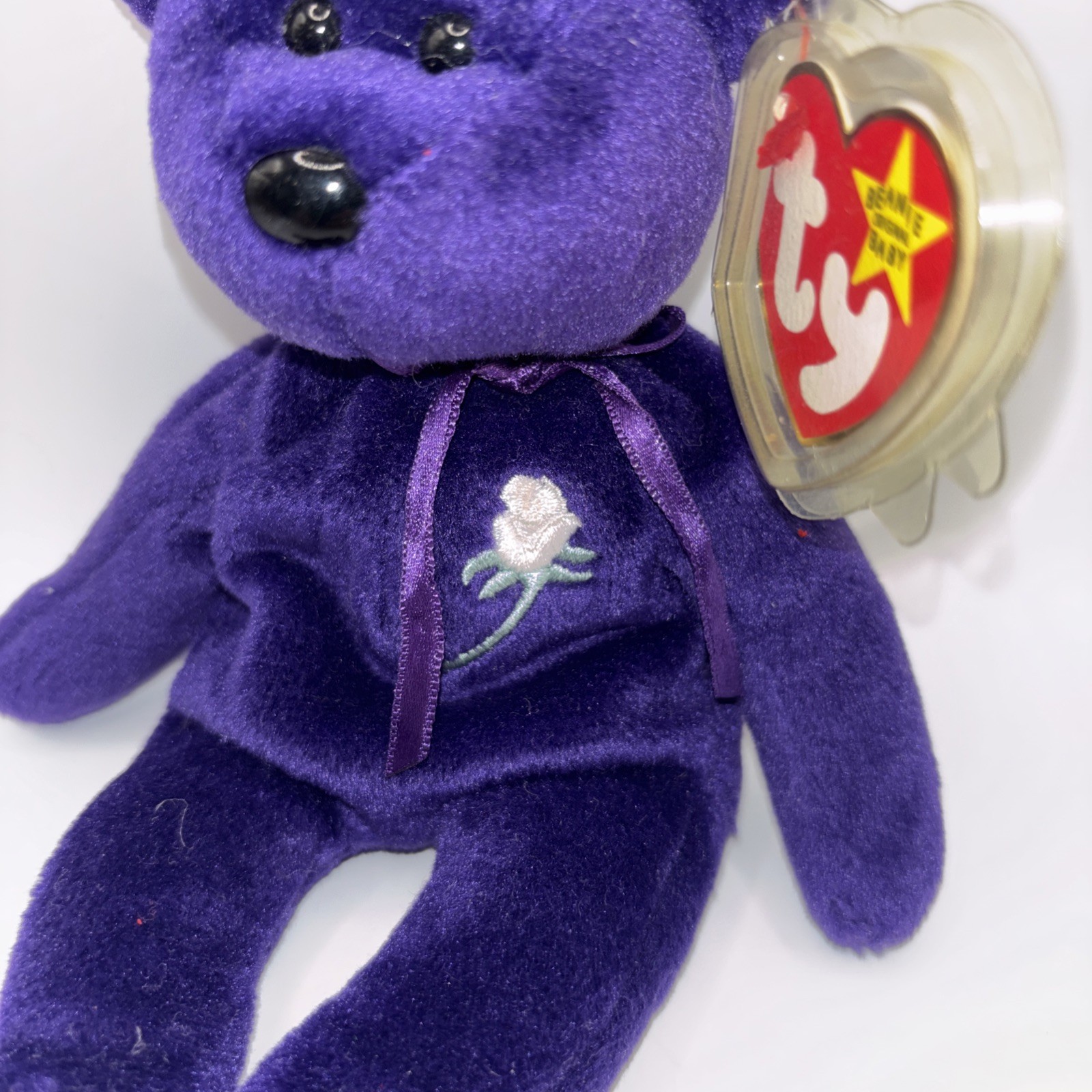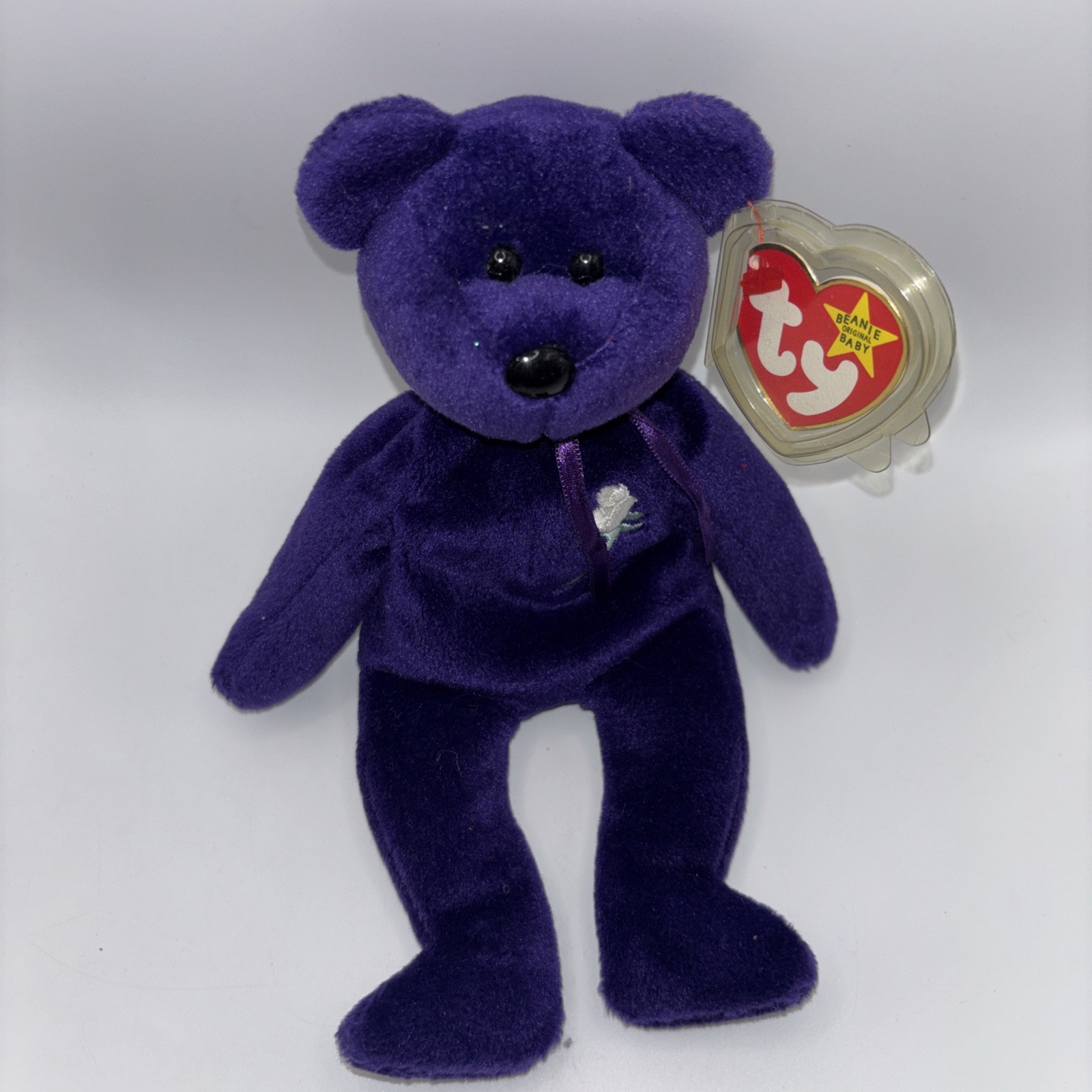 Vintage Ty Beanie Baby Princess Diana Bear 1997 Purple PVC Pellets w Tags