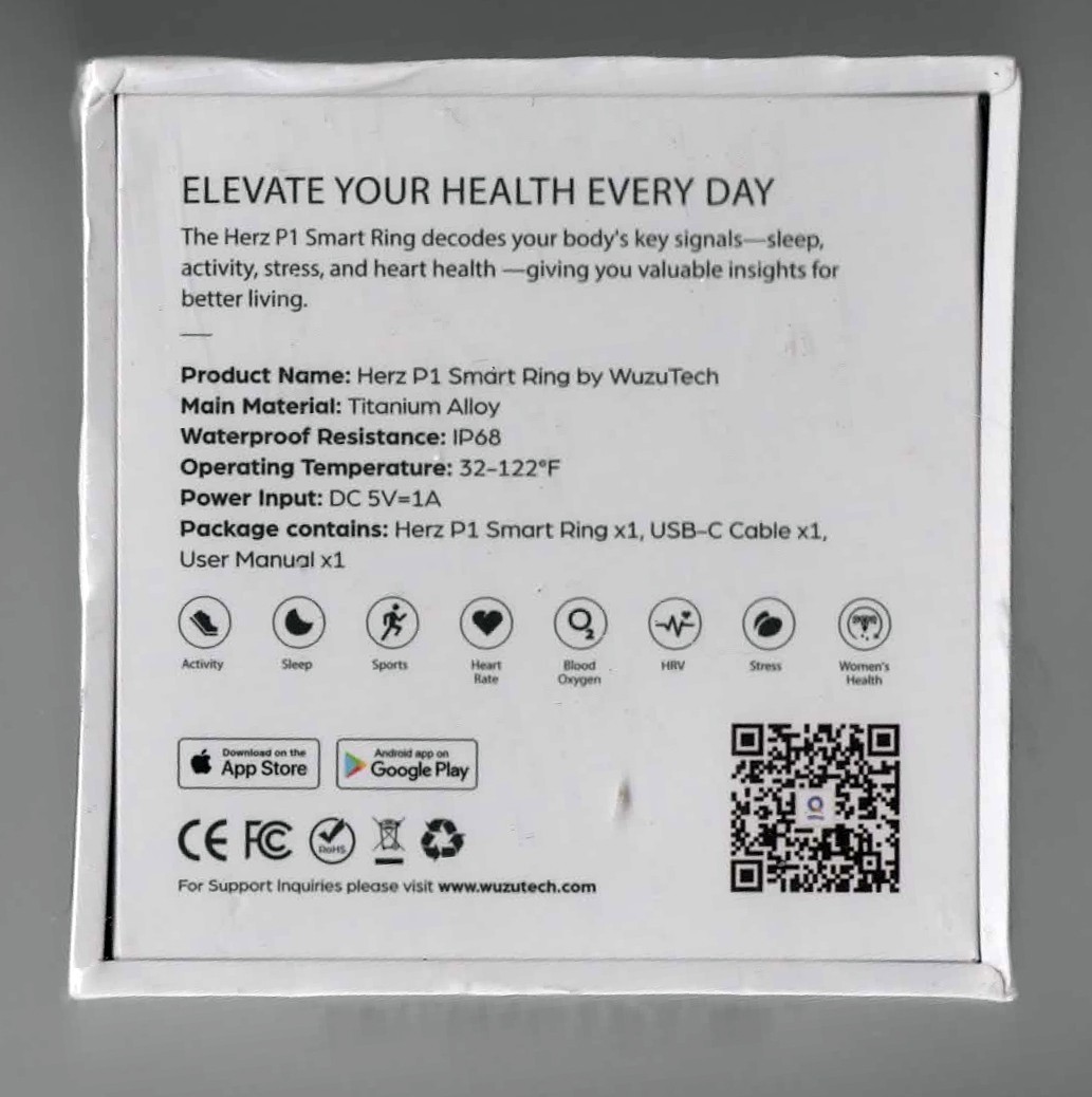 Herz P1 Smart Ring Health Monitor Titanium Alloy Activity Tracker 7-10-12