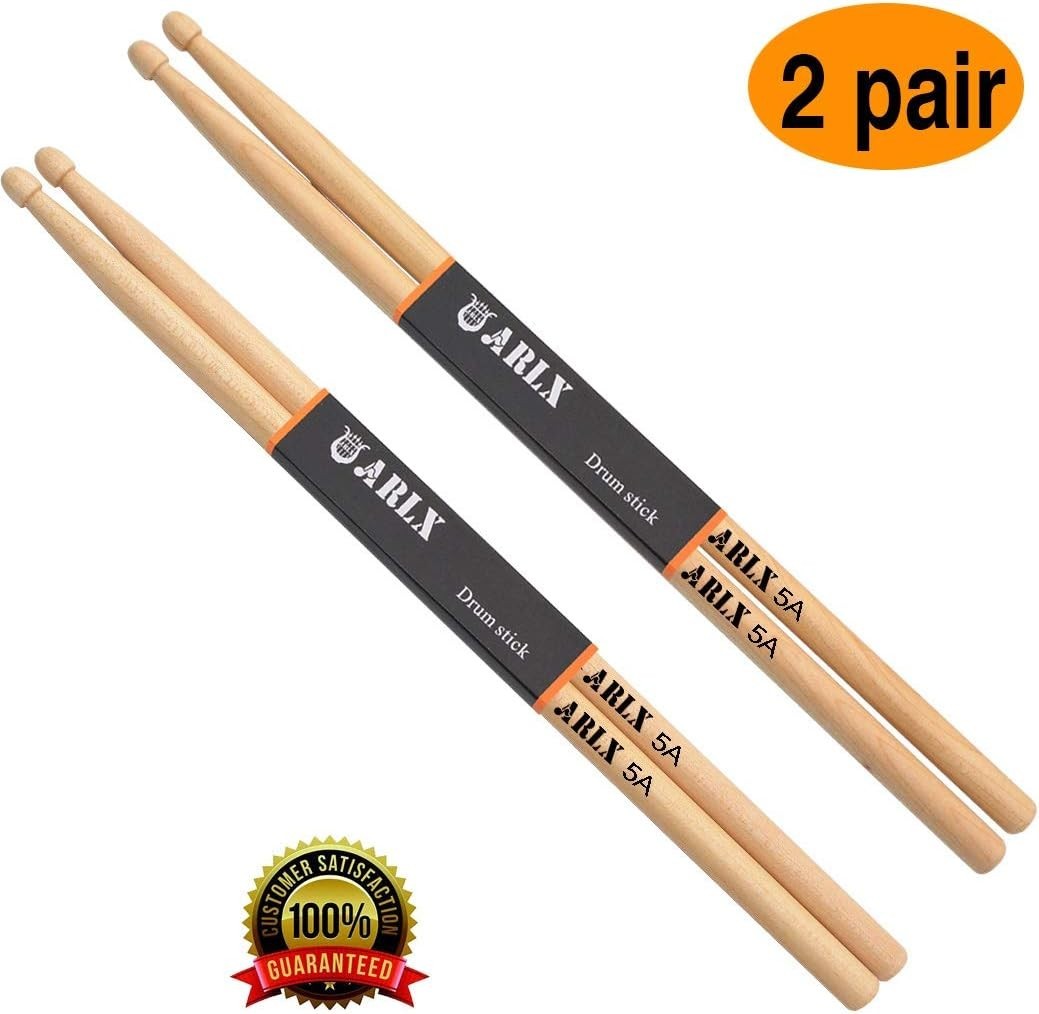 Comfortable Grip 5A Maple Drum Sticks - Natural Finish, Slip-Resistant, 2 Pairs
