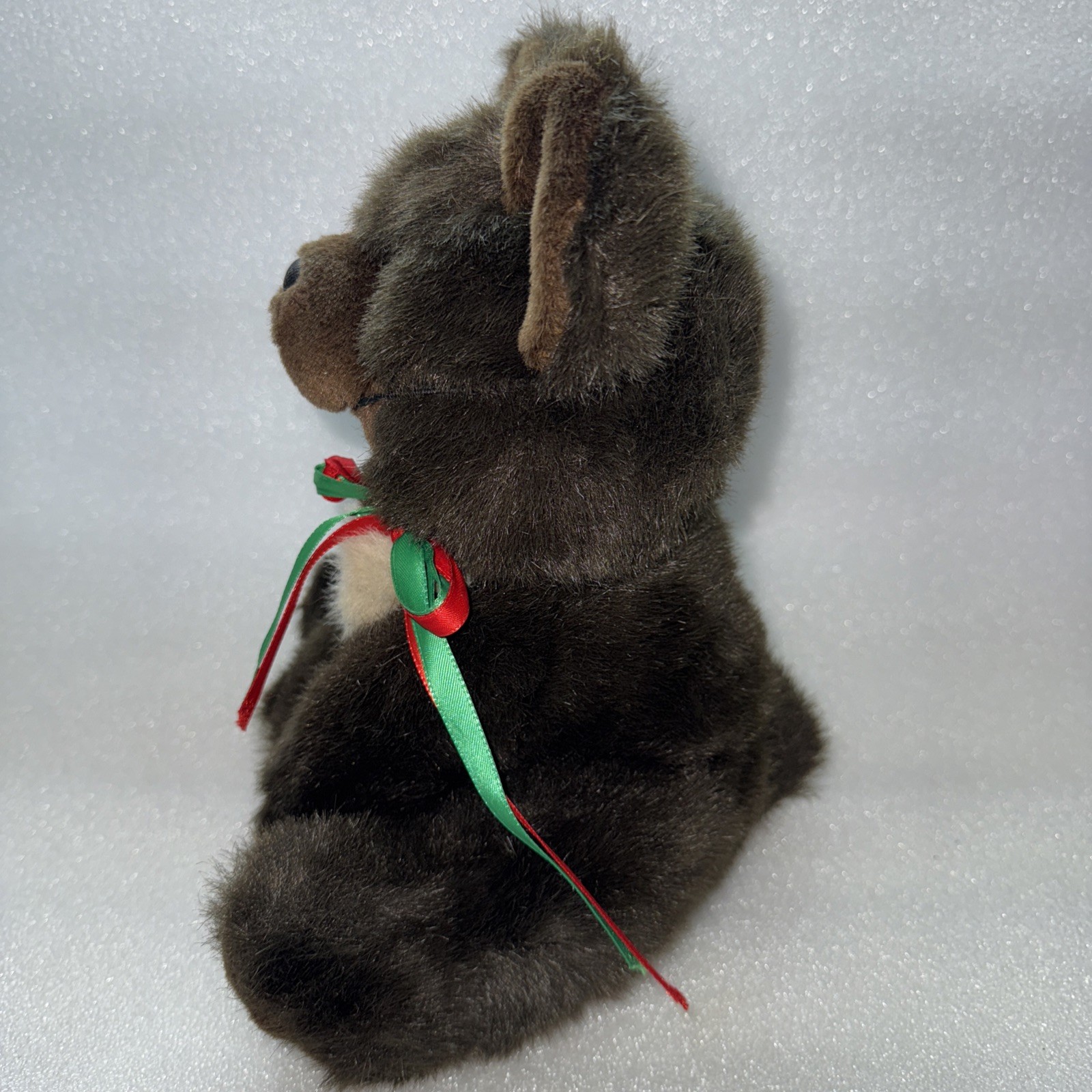 Plush Sitting Brown Bear Red/Green Bow Button Eyes 10 Needs Loved