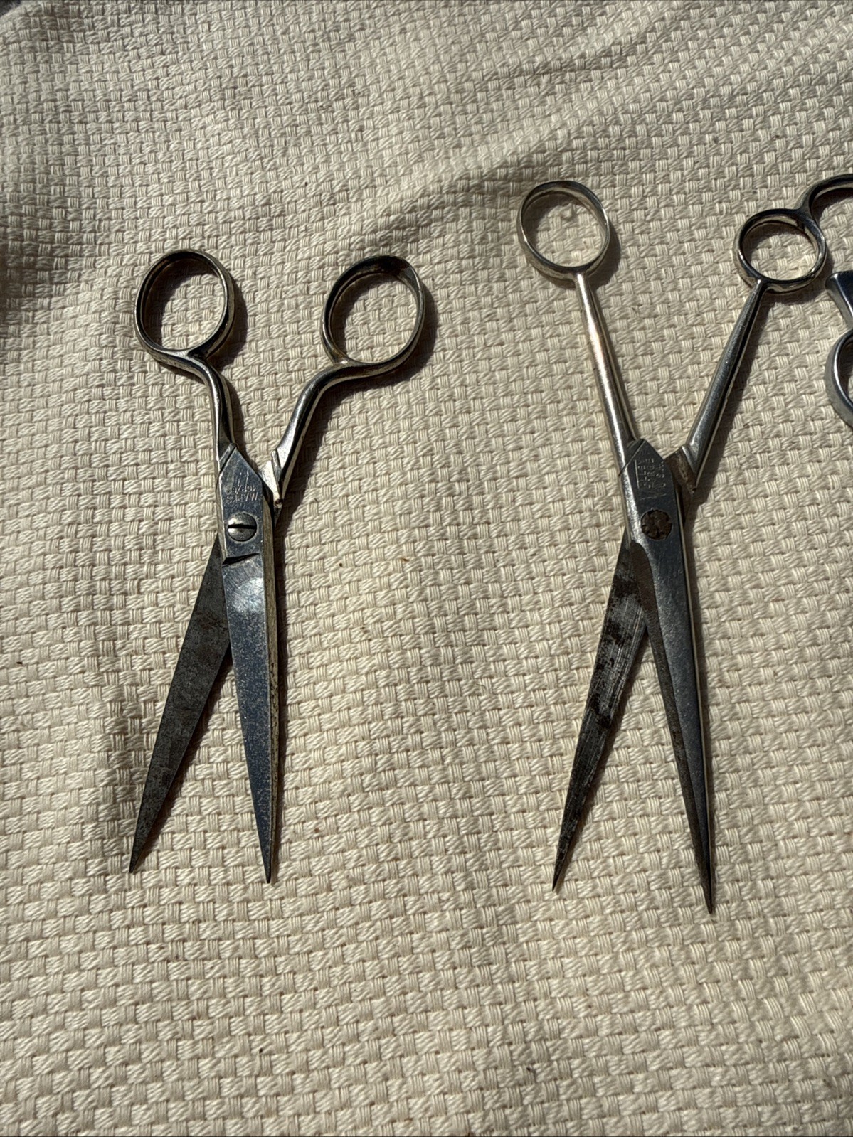 как выглядит Lot Of 8 Pair Of Vintage Antique Barber Shears Steel Scissors Hair Cutting READ фото