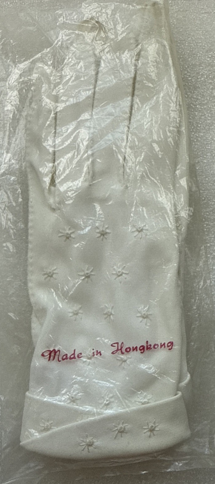 Vintage Women's Gloves Ivory Hand-stitched Design Split-cuff HongKong SZ6.5