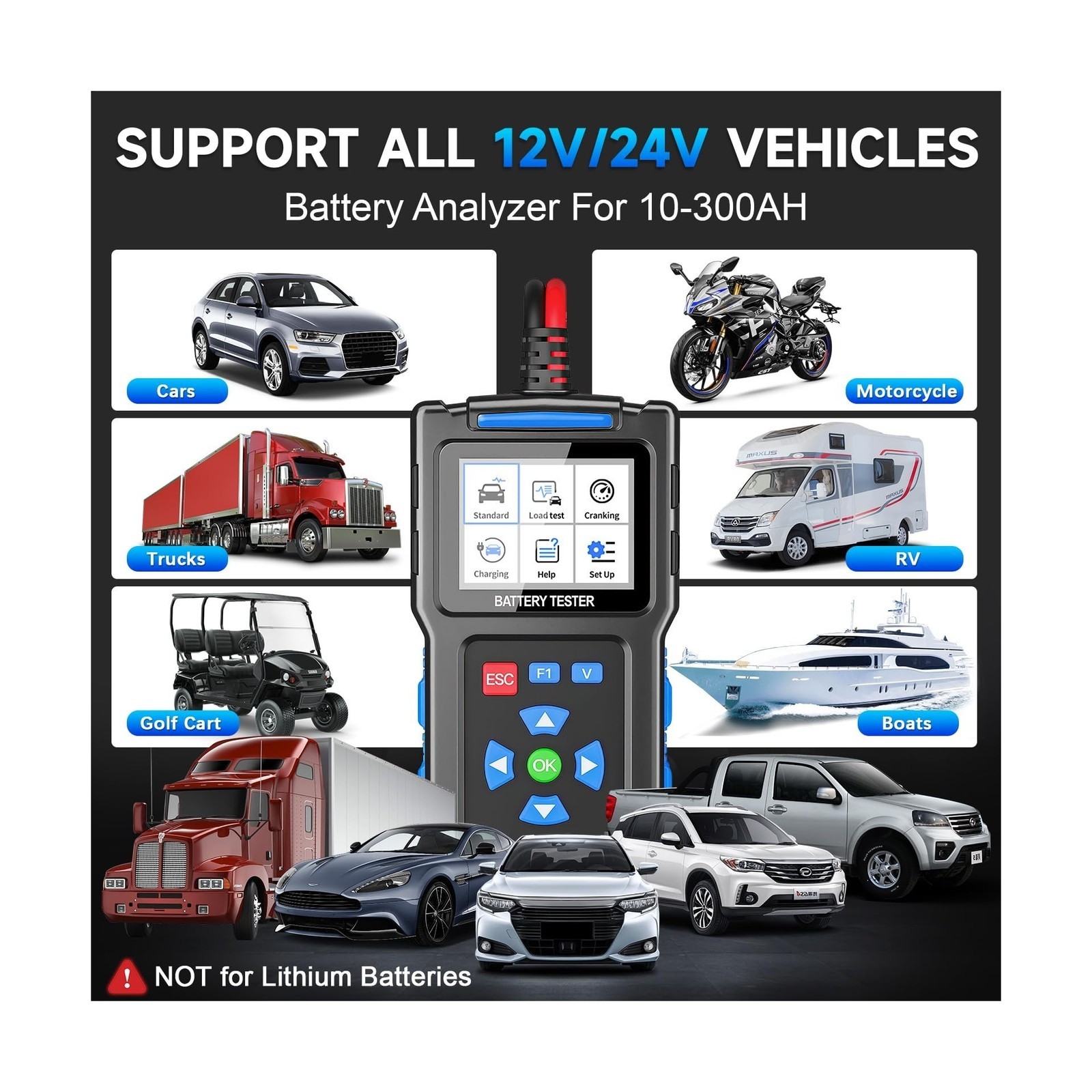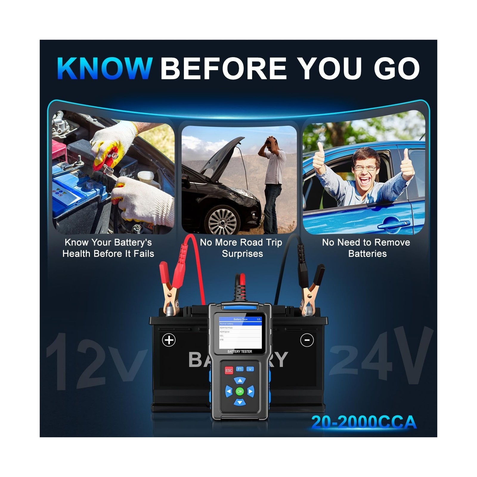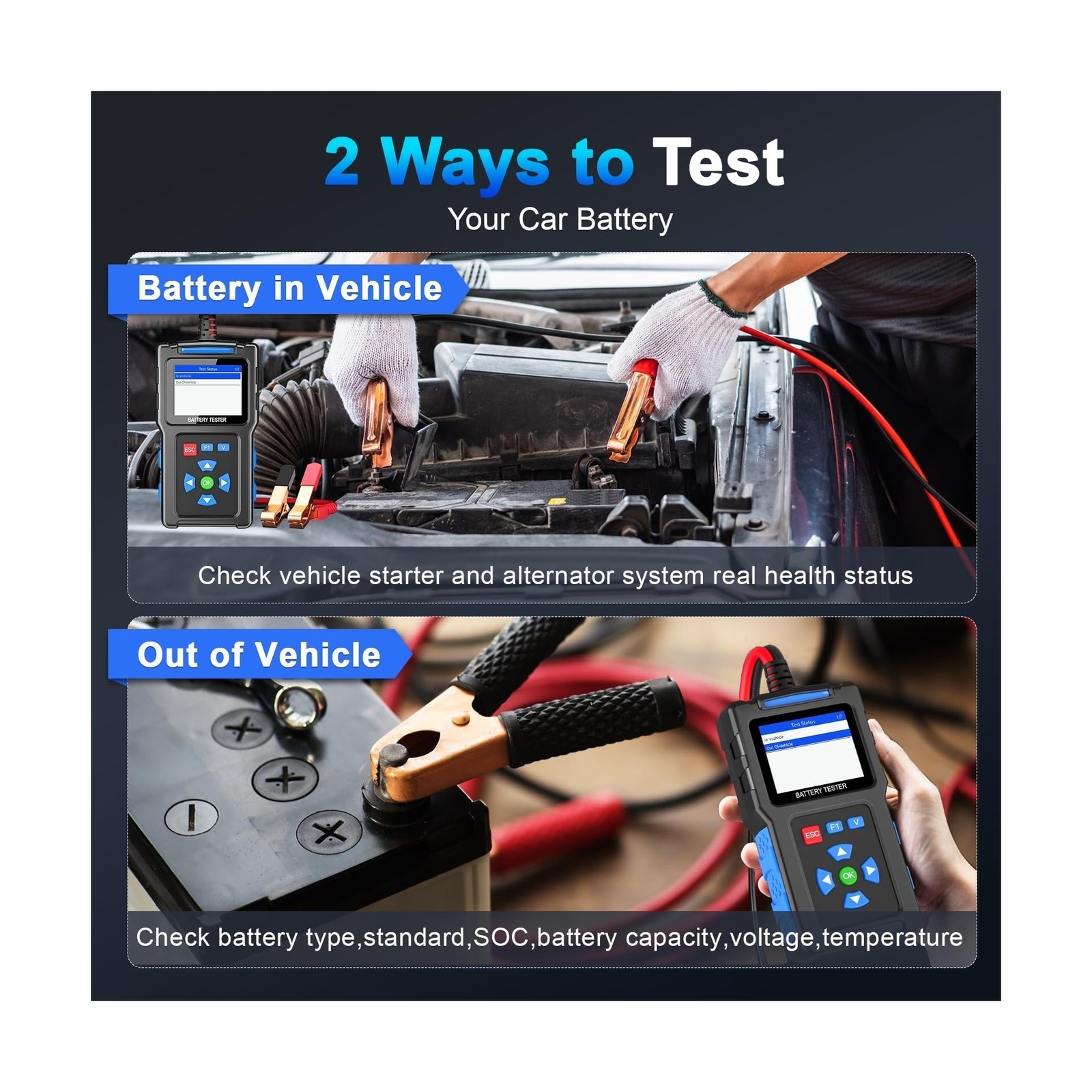 • Battery Load Tester 12v Automotive, Car Battery Tester and Alternator Tester ...