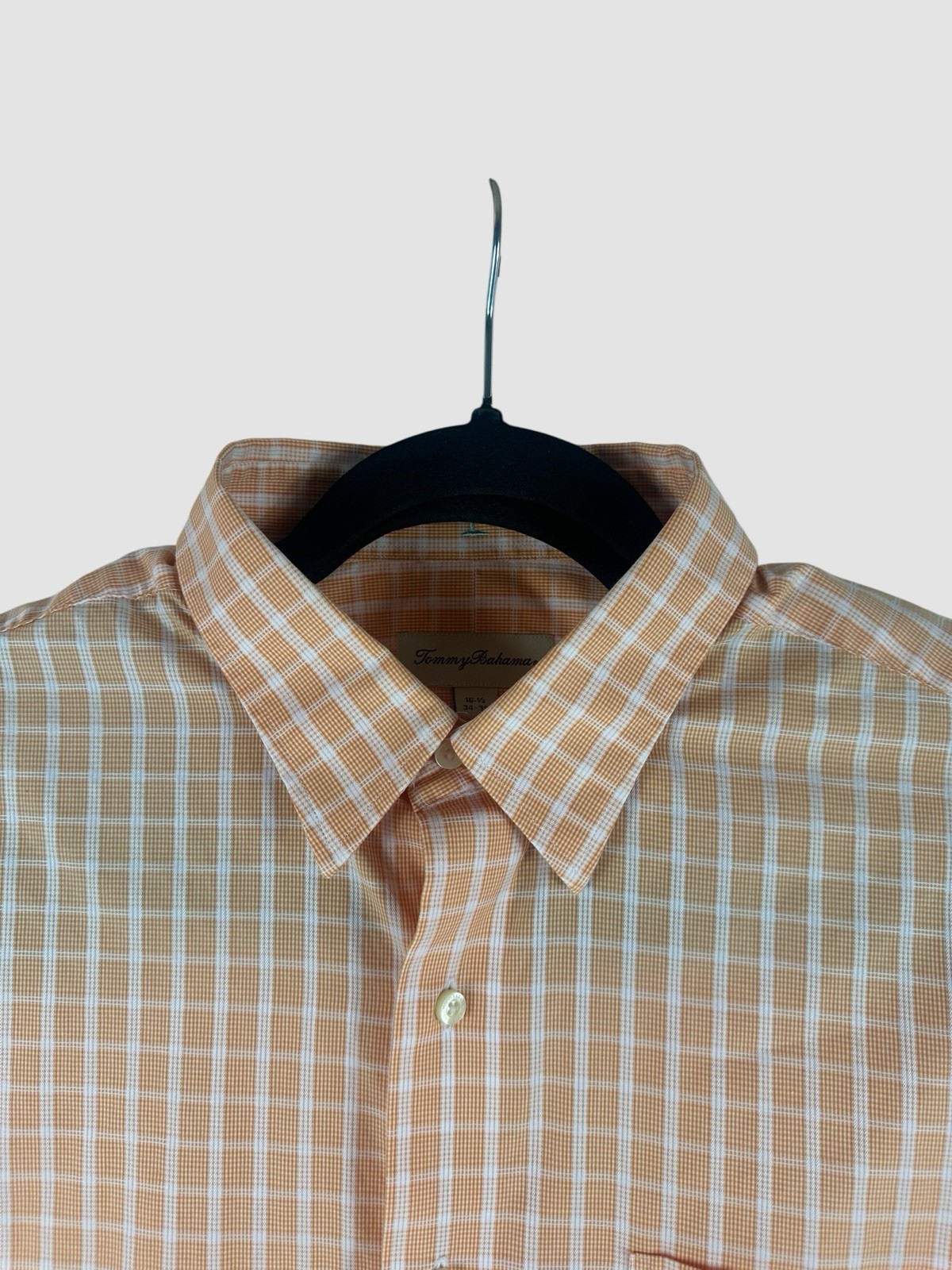 как выглядит Tommy Bahama Men s 16.5 34-35 Orange Check Button Down Shirt Long Sleeve Comfort фото
