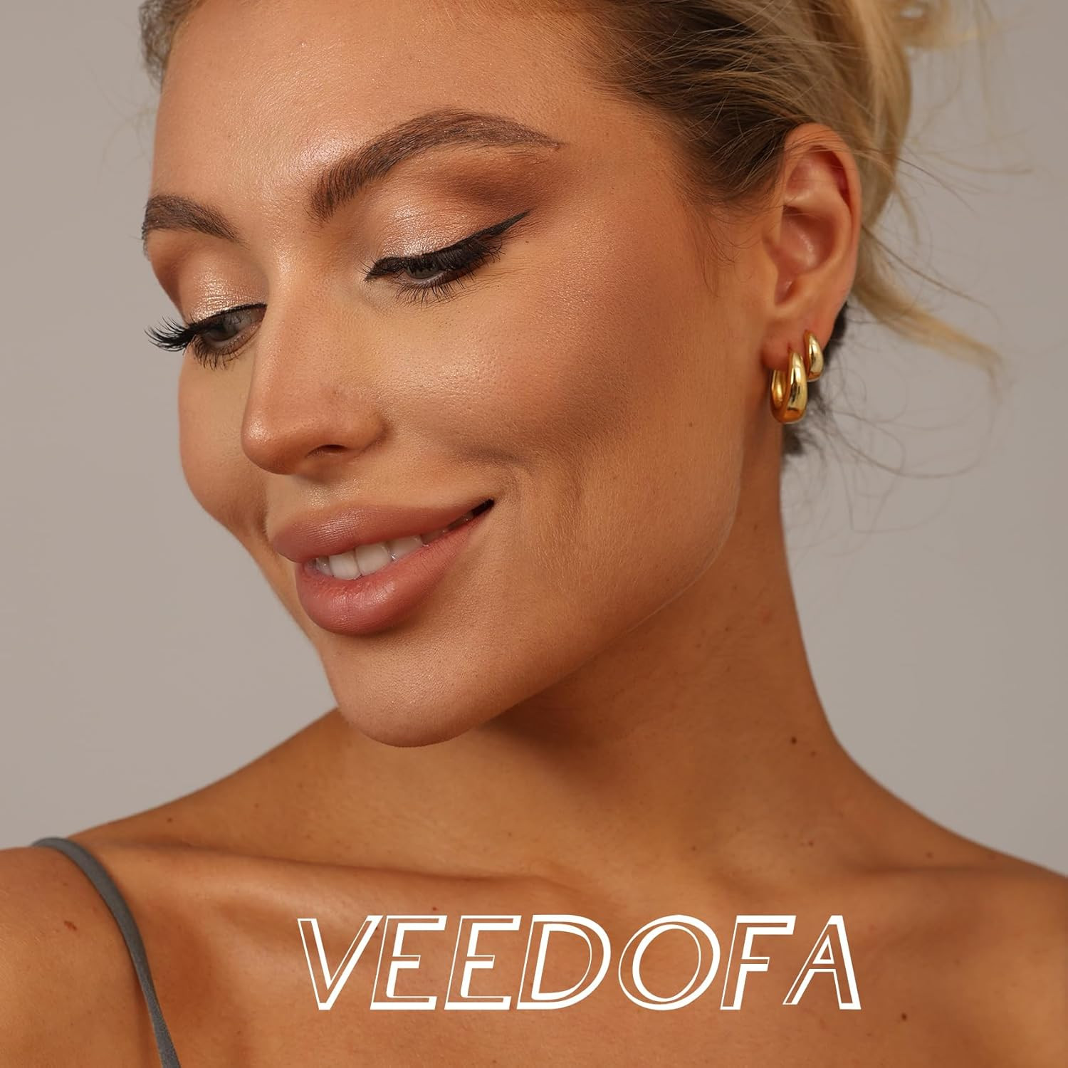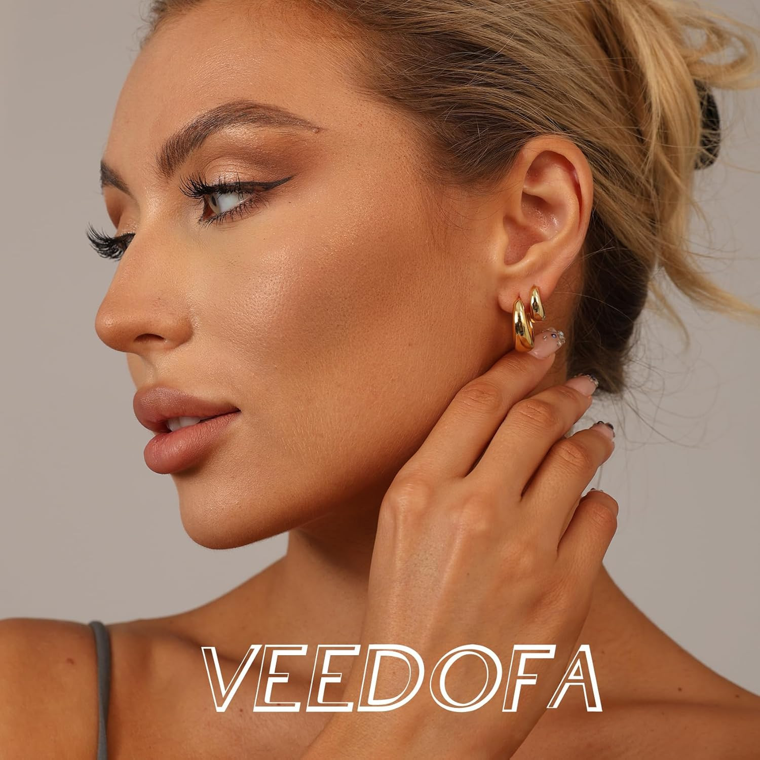 как выглядит Small Hoop Earrings Set for Women,Trendy 14K Gold Plated Sterling Silver Small C фото
