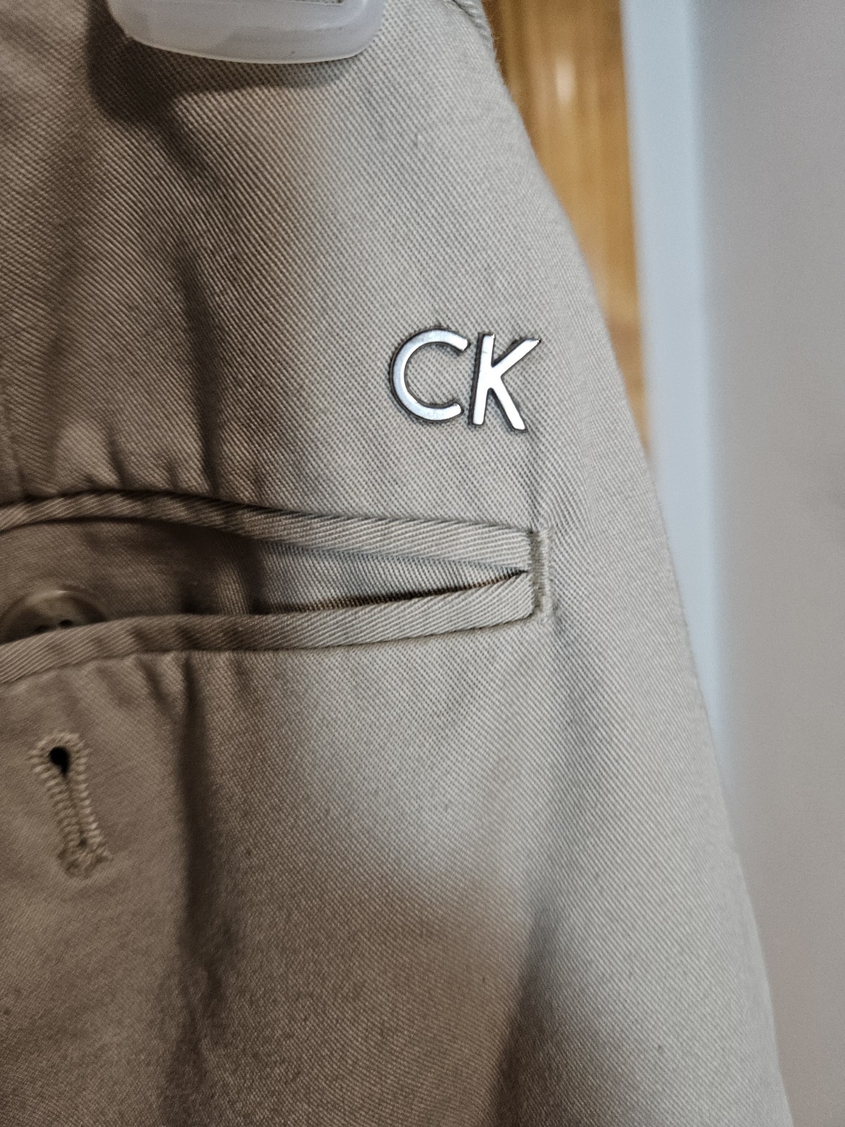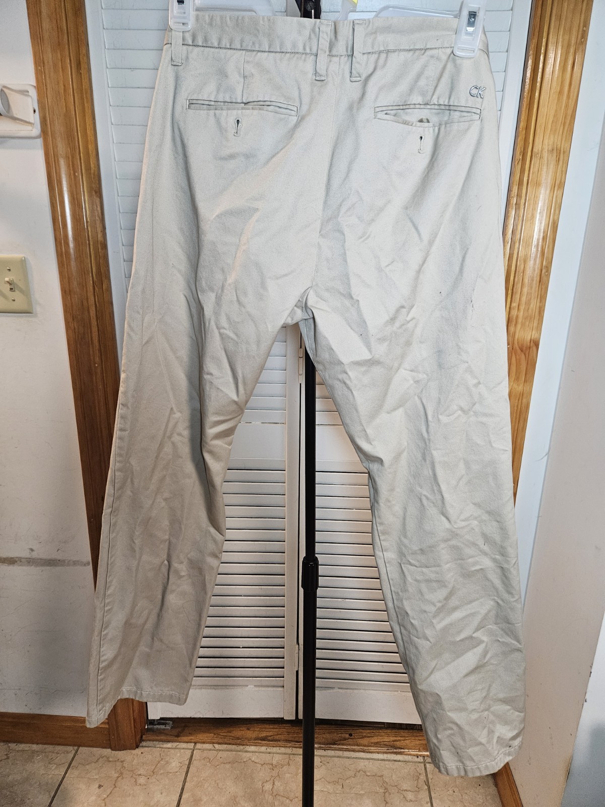 как выглядит Calvin Klein Mens Classic Body Fit Solid Linen 4-Pocket Pants TAN, 31x30 фото