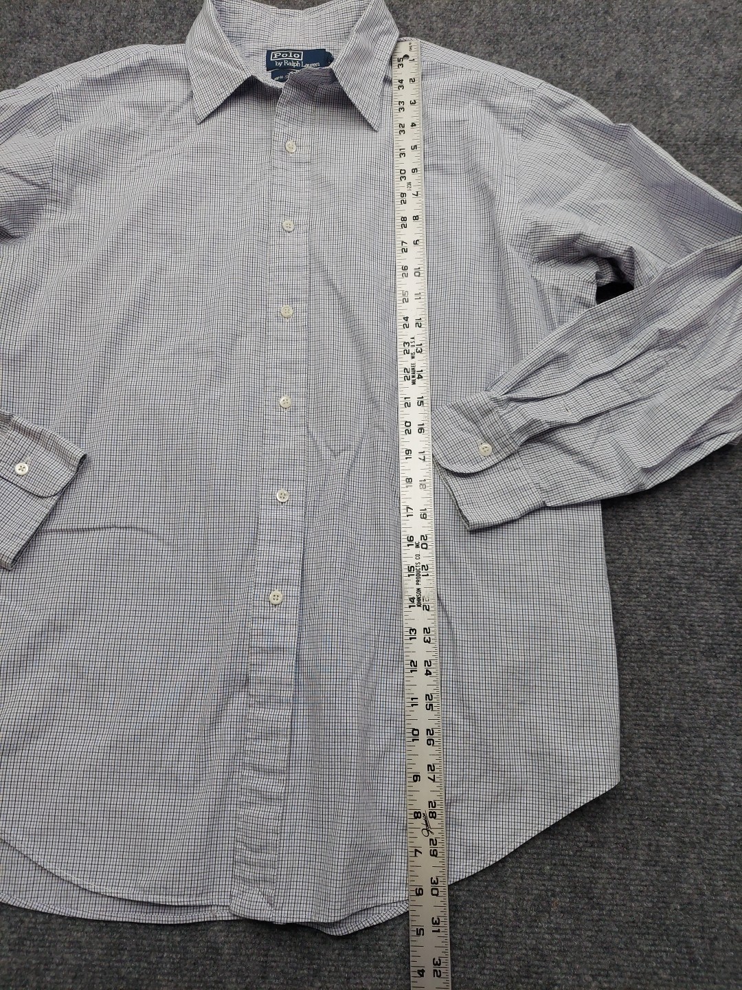 как выглядит Polo Ralph Lauren Shirt Mens 17-34 Blue Plaid Lowell Button Up Long Sleeve Dress фото